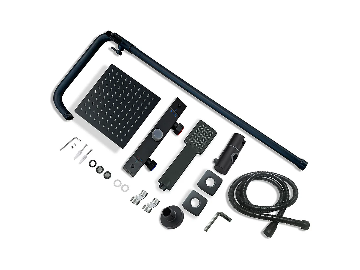 AICA Colonna doccia a ponte con soffione quadrato 20x20cm, sistema doccia con miscelatore, nero opaco