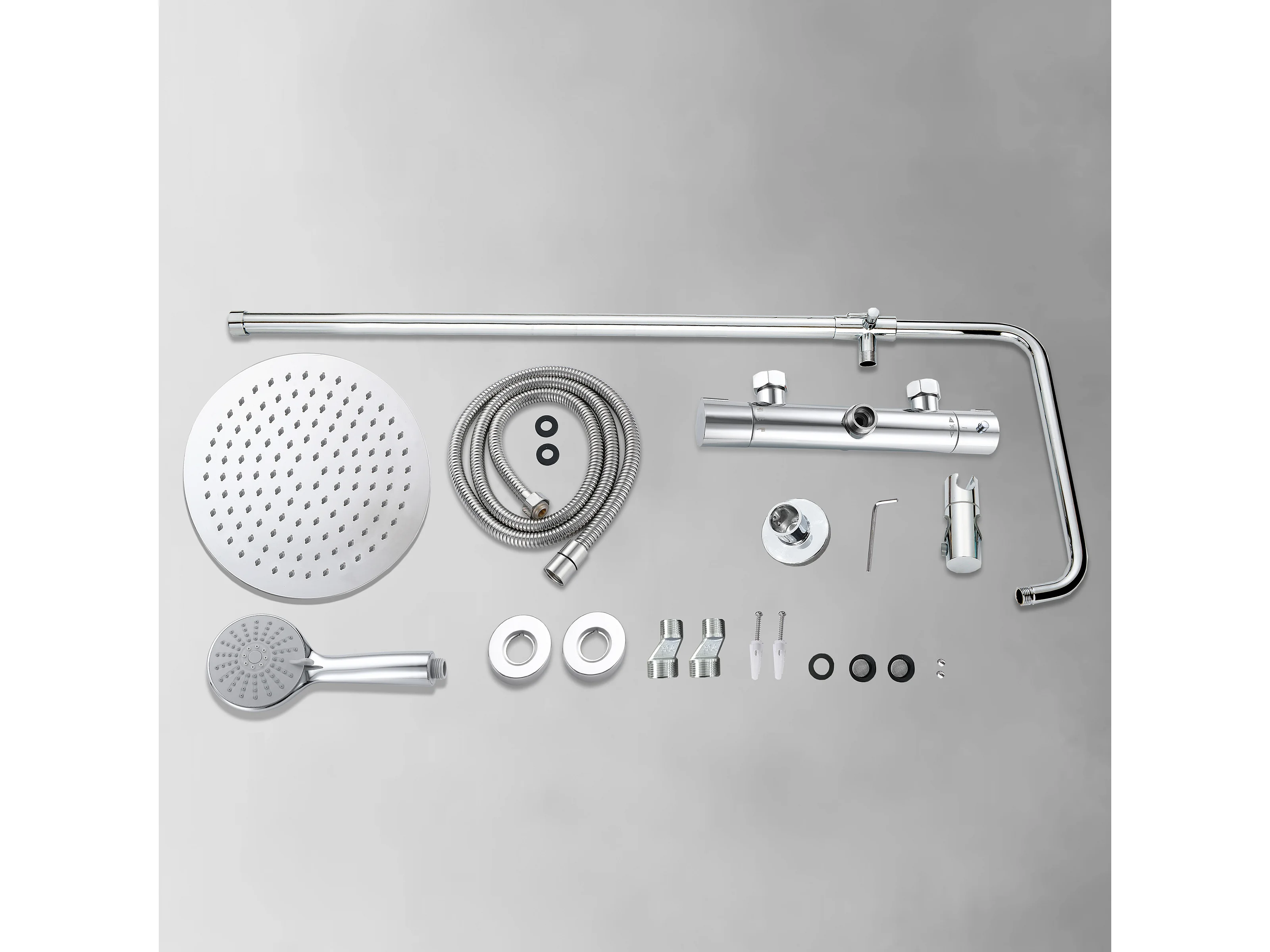 Colonne doccia termostatiche con soffione rotondo 25cm in acciaio inox e altezza regolabile 75-128cm, cromato