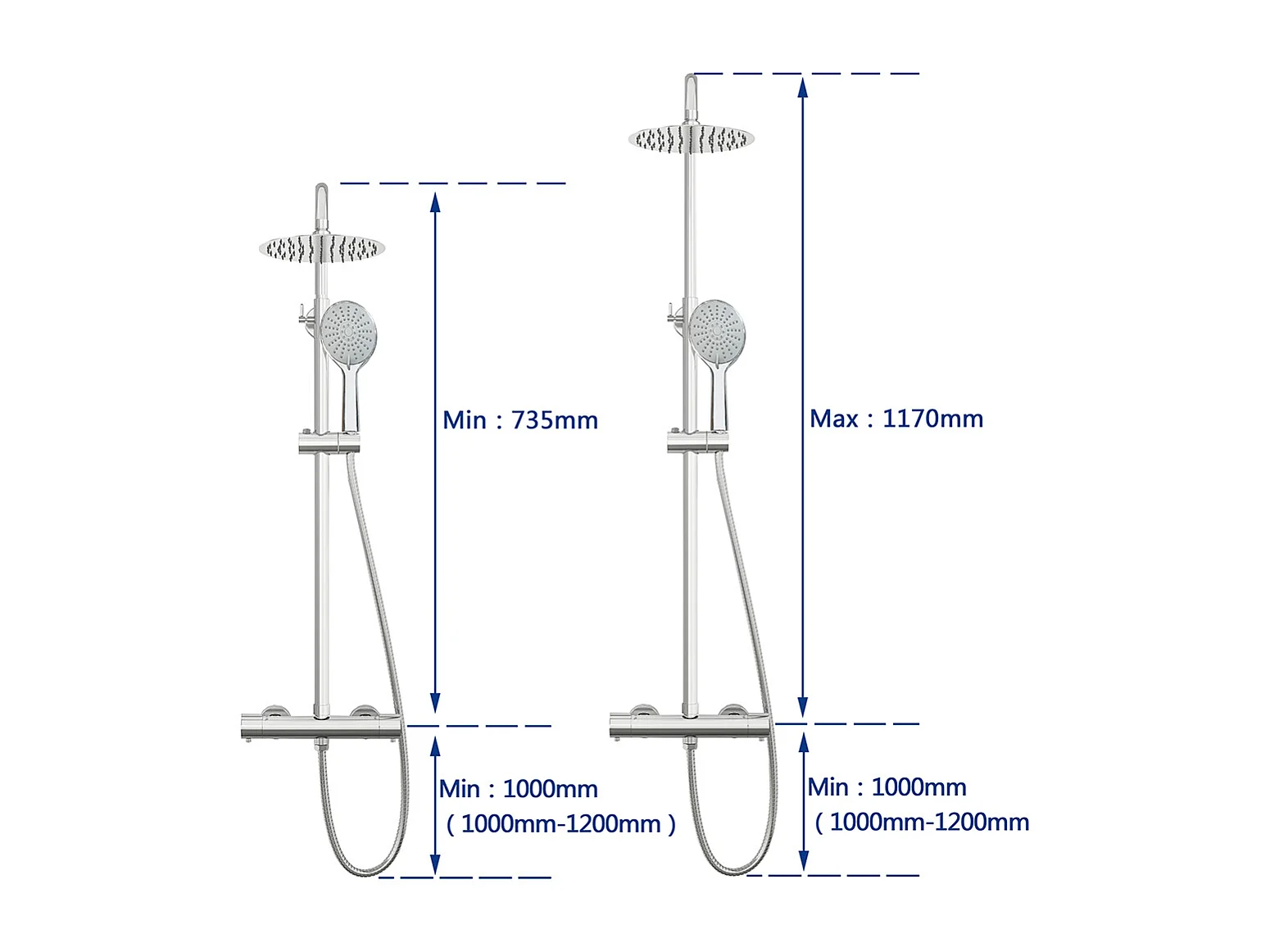 Colonne Doccia Termostatiche, Sistema Doccia con Miscelatore Termostatico a 38℃ e Doccetta Rotonda Altezza Regolabile 735-117cm Cromo