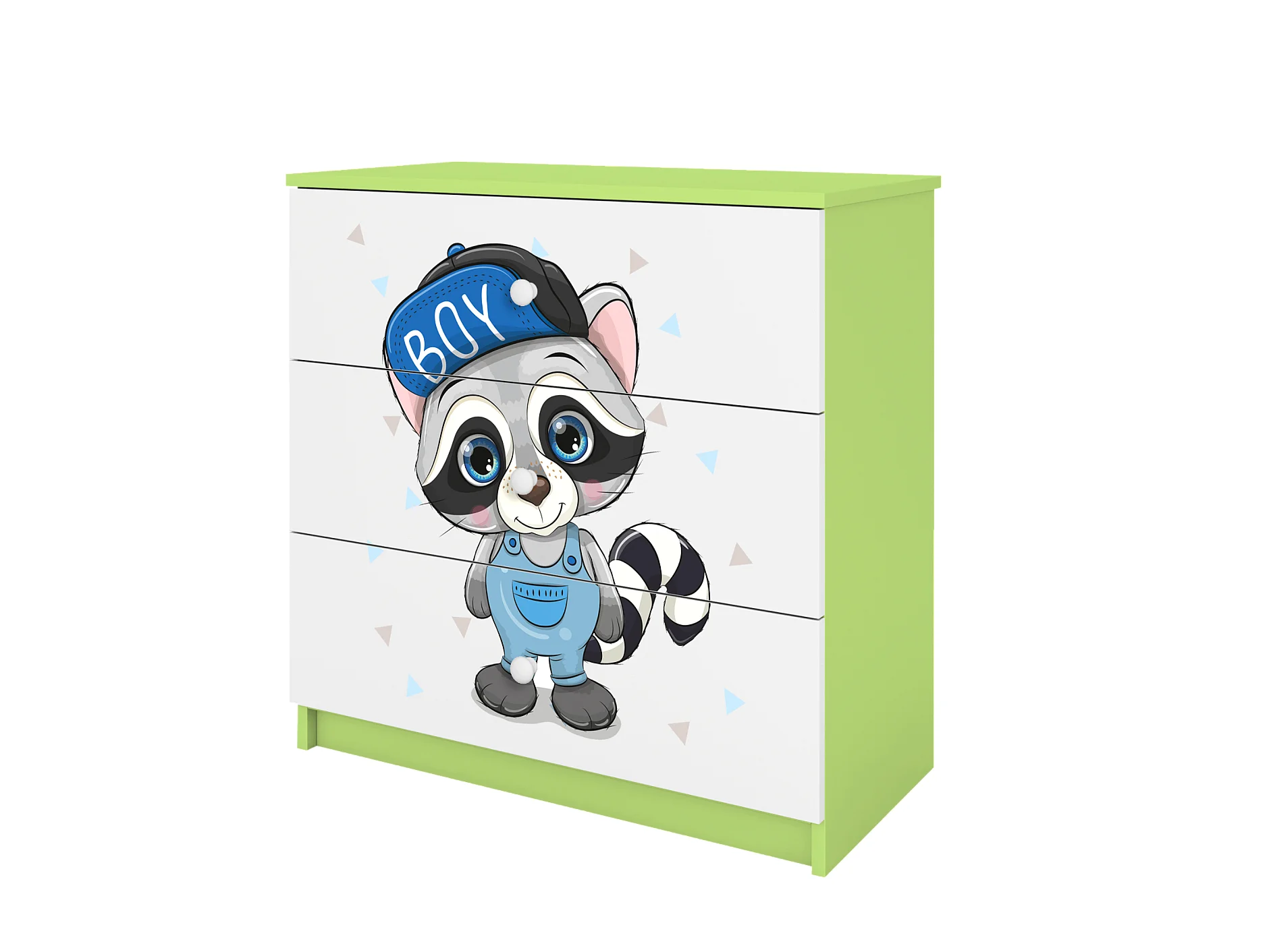 Commode pour enfants avec tiroirs Raton laveur en couleur verte Babydreams