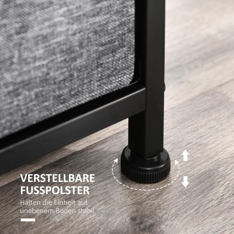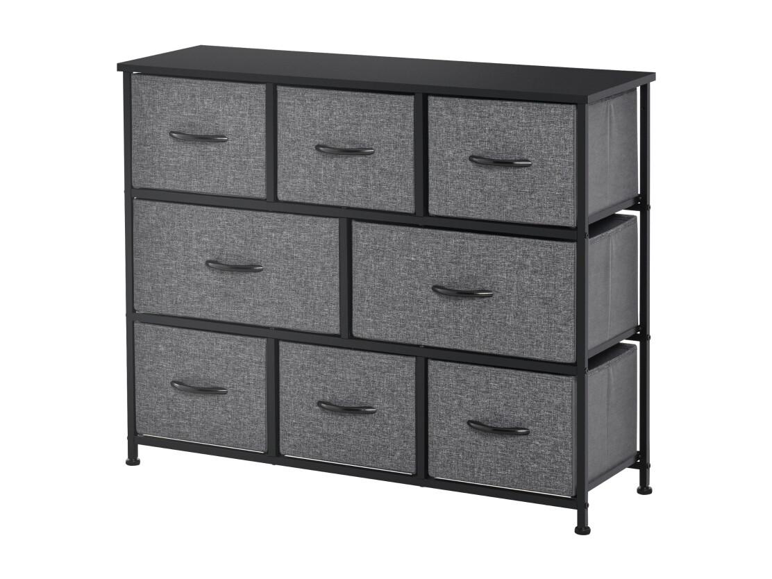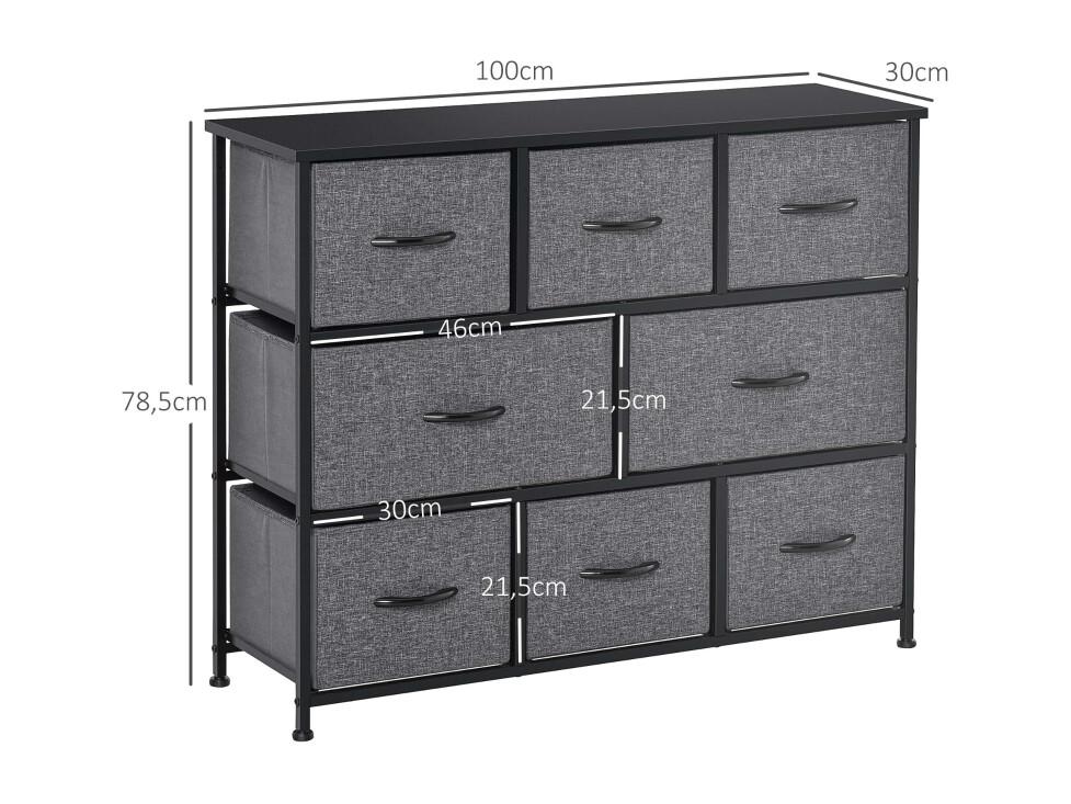 Comò 8 cassetti tissu métal rangement salon chambre gris foncé 100 cm