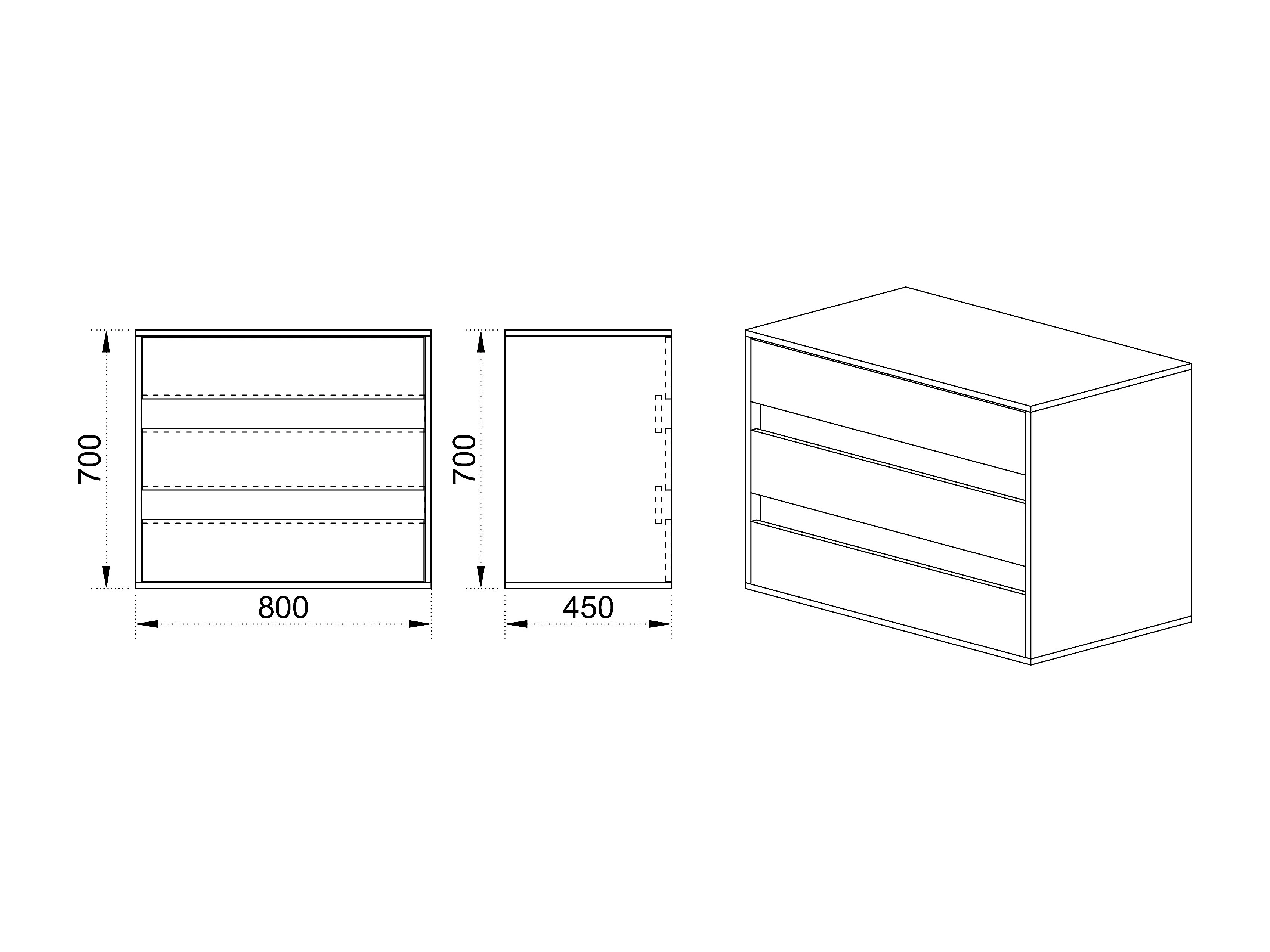 Comò bicolore per camera da letto con tre cassetti CI1 80x70 rovere e grigio