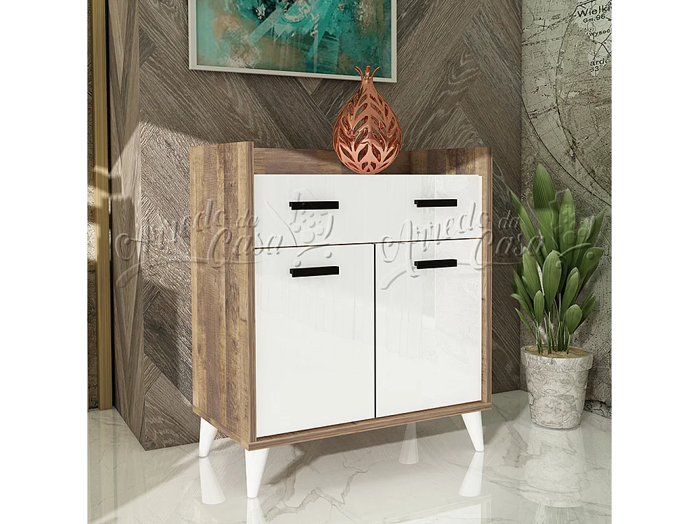 Comò camera da letto moderno con cassetto 75x89 rovere scuro e bianco lucido CU39