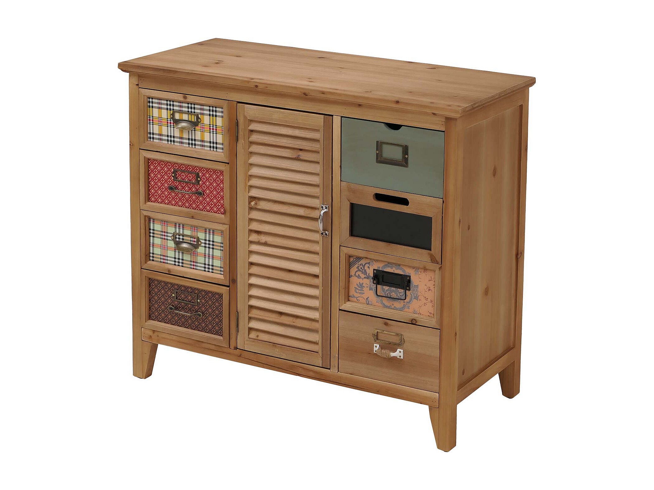 Comò cassettiera MCW-O63, armadio scomparti e cassetti, effetto persiana vintage shabby 80x91x40 cm ~ telaio naturale