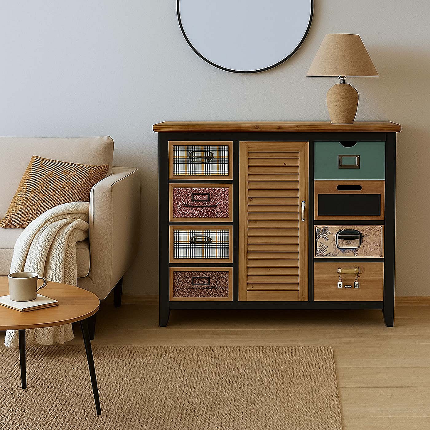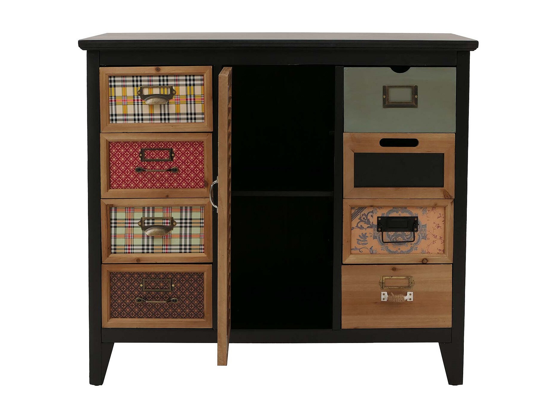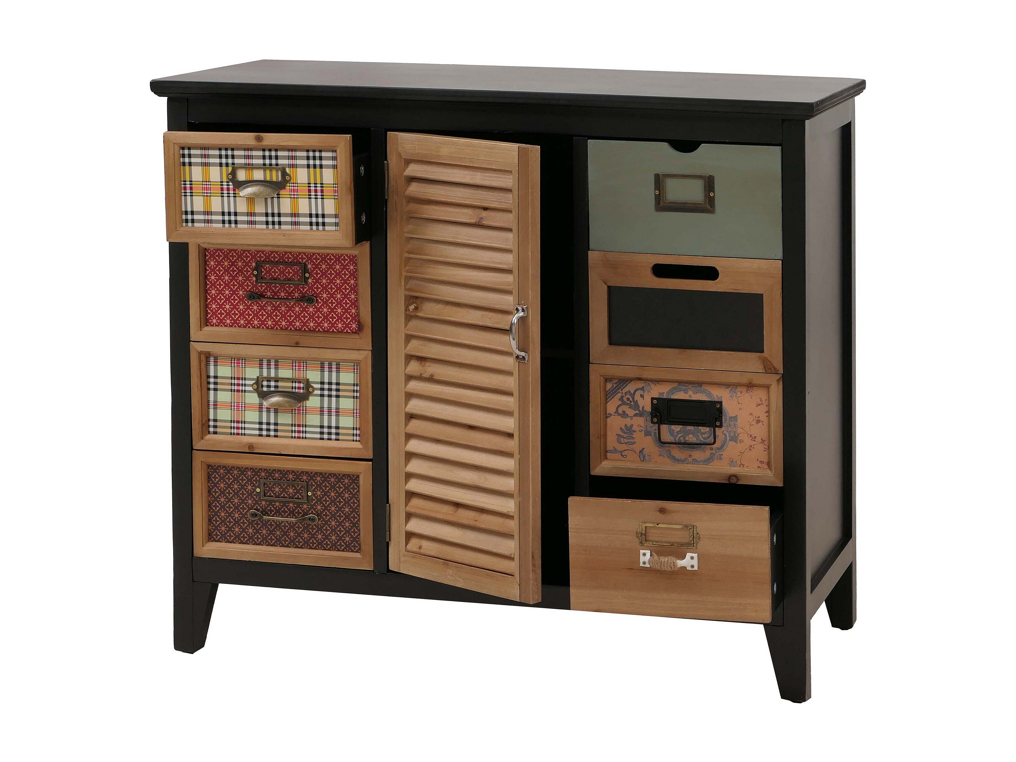 Comò cassettiera MCW-O63, armadio con cassetti, portatarghette persiana vintage shabby 80x91x40 cm ~ telaio nero