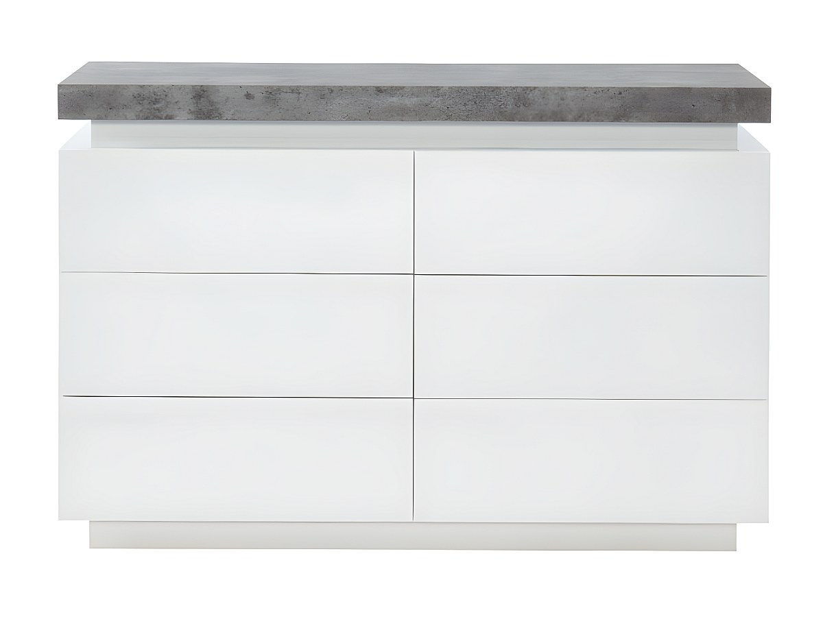 Comò con 6 cassetti e LED in MDF laccato Bianco e calcestruzzo - HALO II