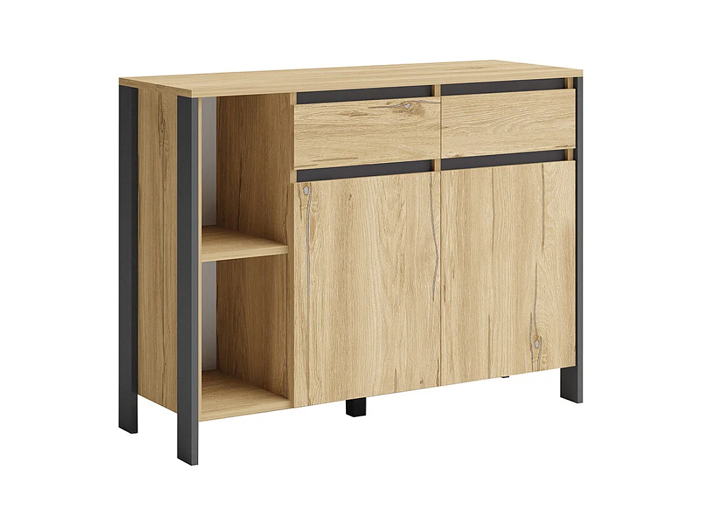 Comò moderno 137x81cm rovere naturale con dettagli neri CLK7