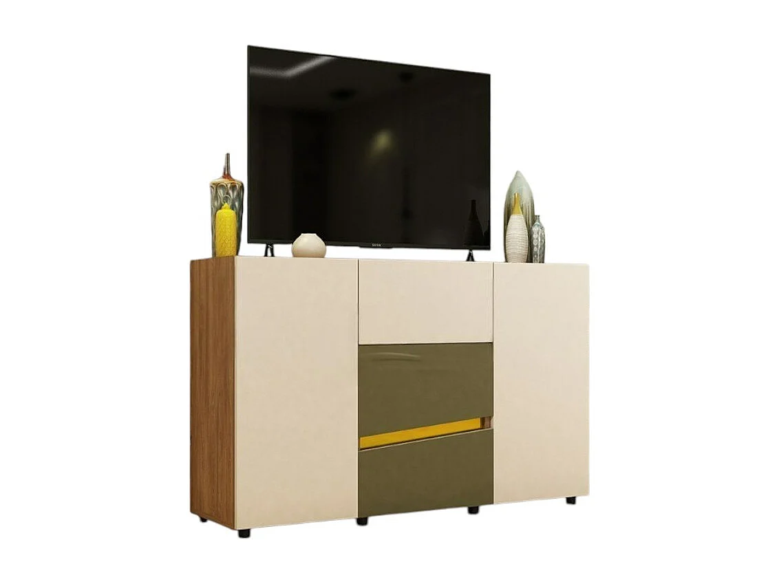 Comò con dettagli dorati 130x85x43 cm in noce, beige, verde oliva CU45