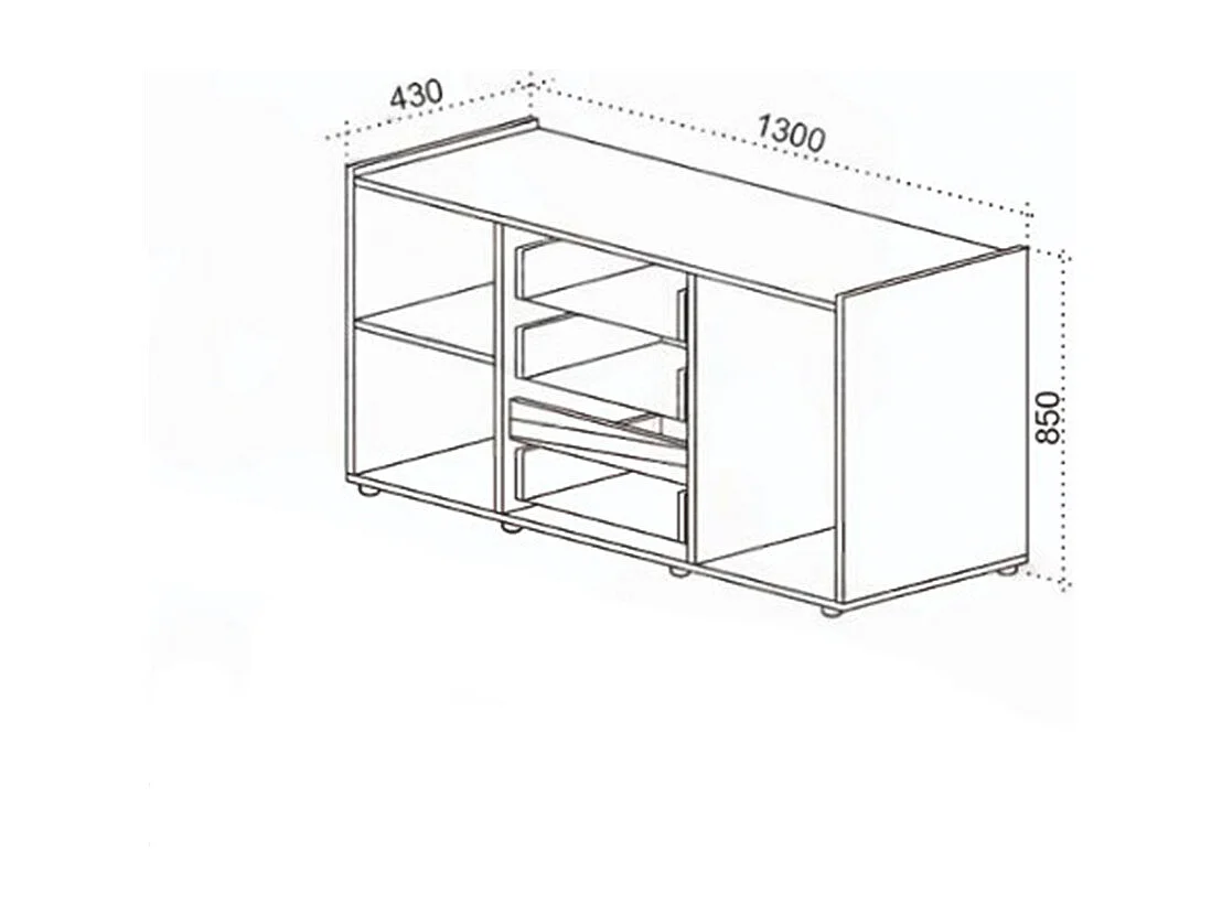 Cassettiera con 3 cassetti 70x73x44,5 cm in bianco lucido e noce CU46