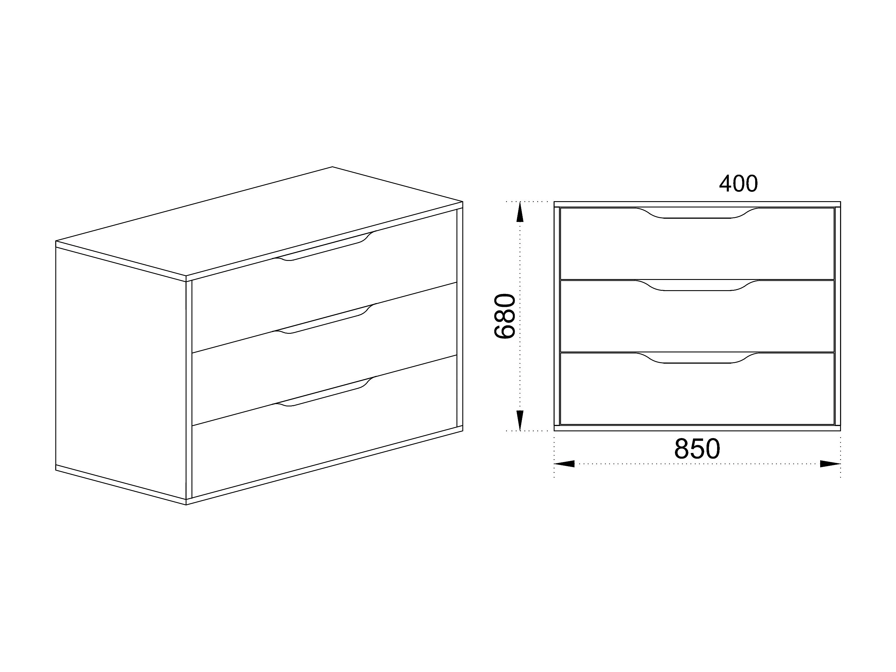 Comò da camera da letto effetto legno minimalista con tre cassetti CSMG1 70x57 bianco legno