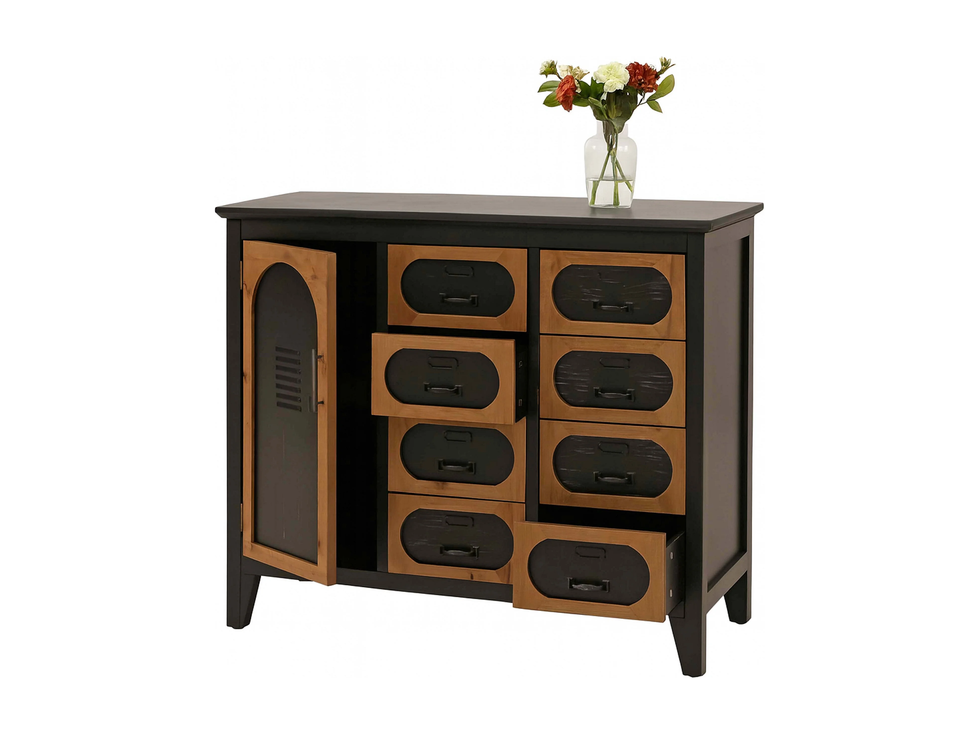 Comò da farmacia MCW-O63, armadio con cassetti e sportello vintage shabby industriale, 80x91x40 cm ~ telaio nero