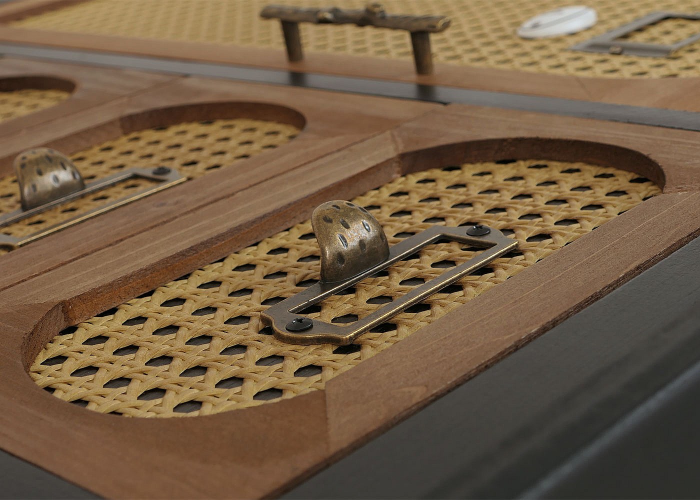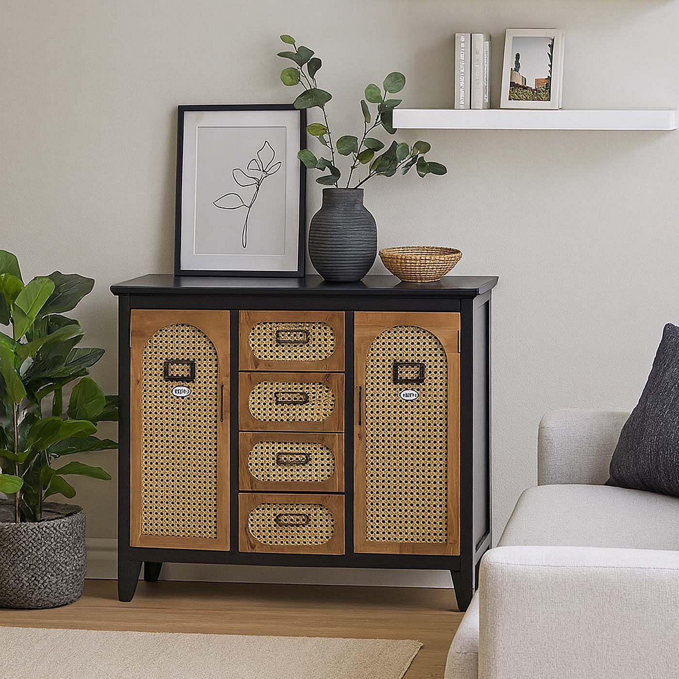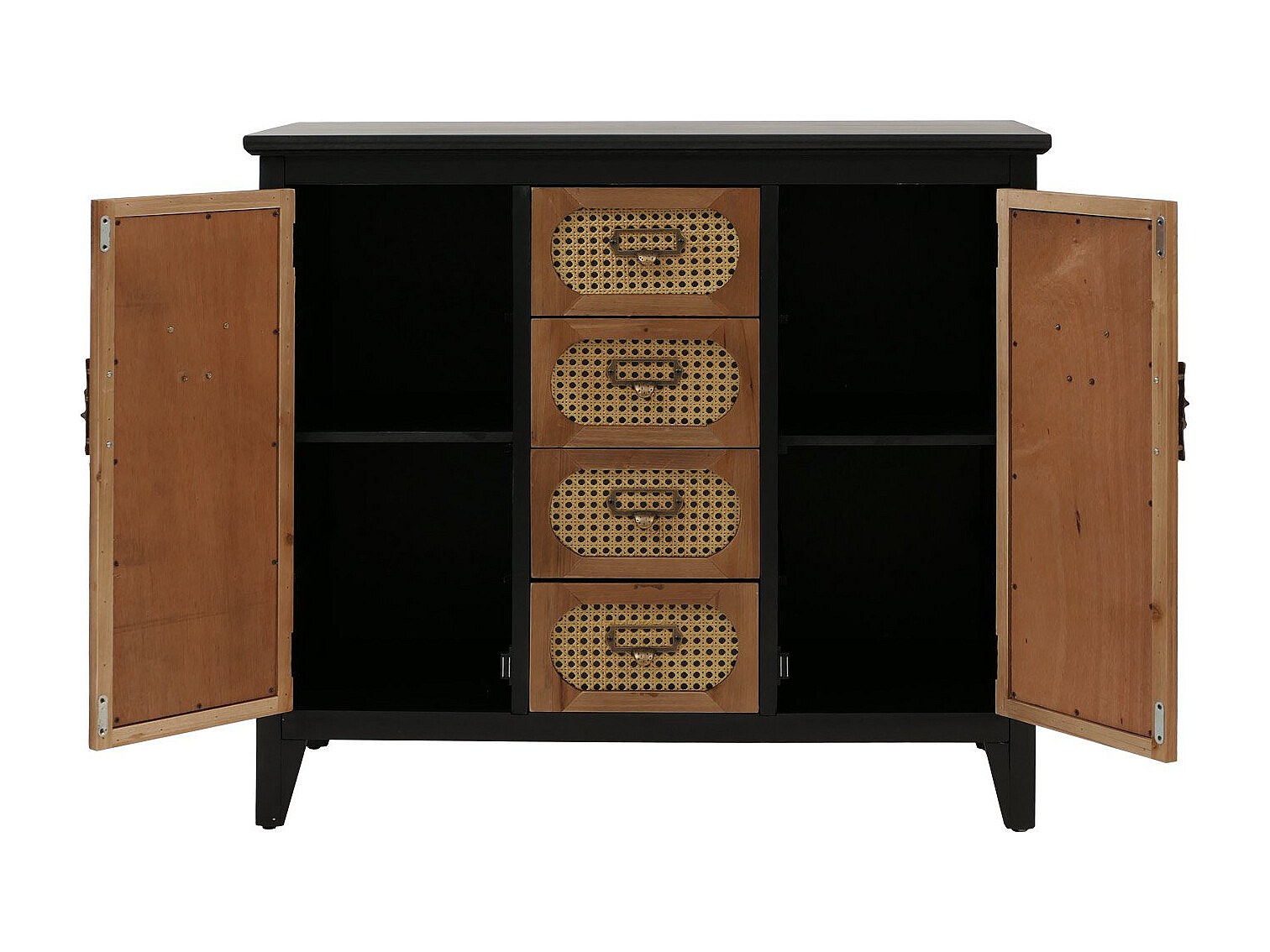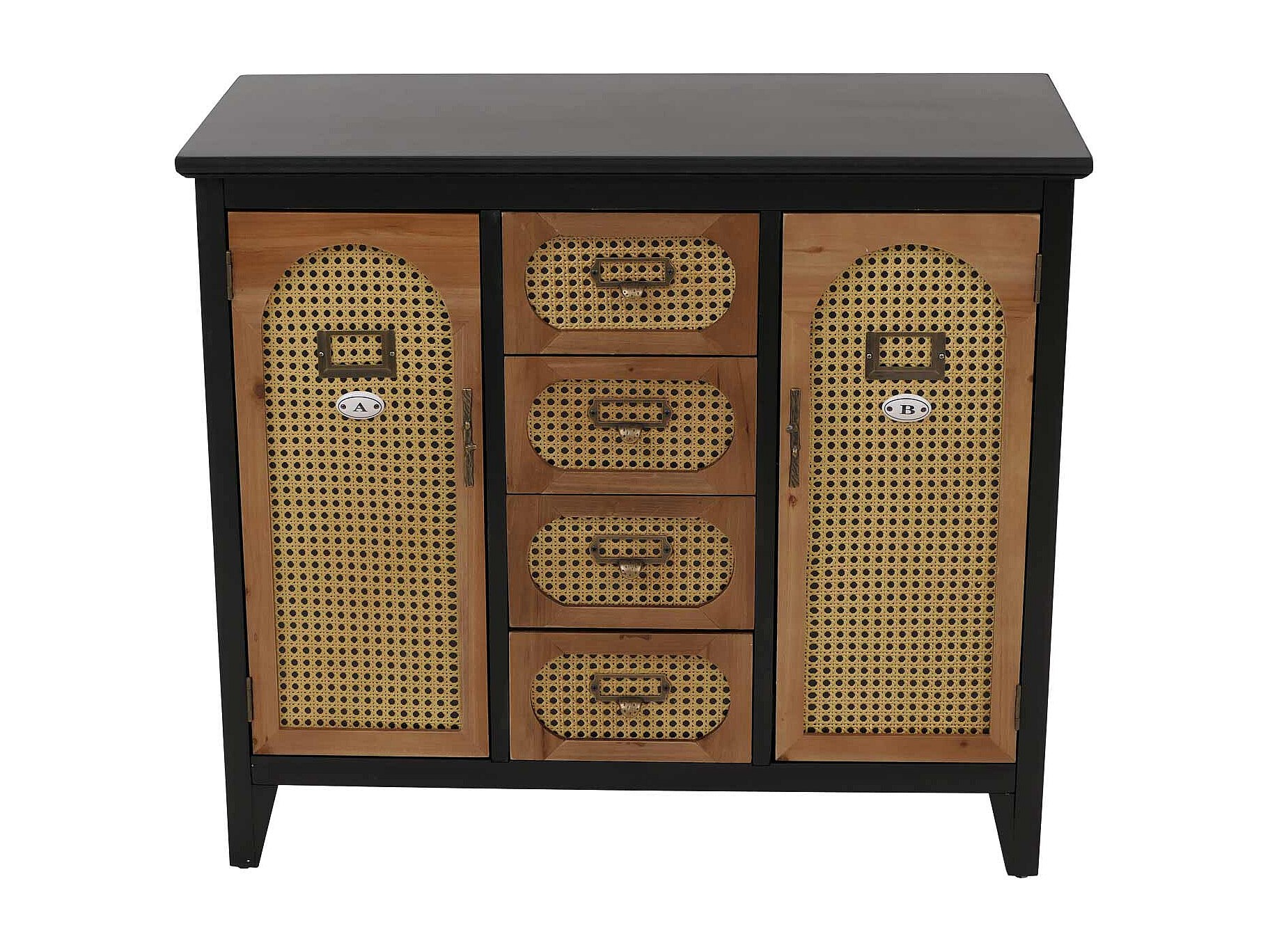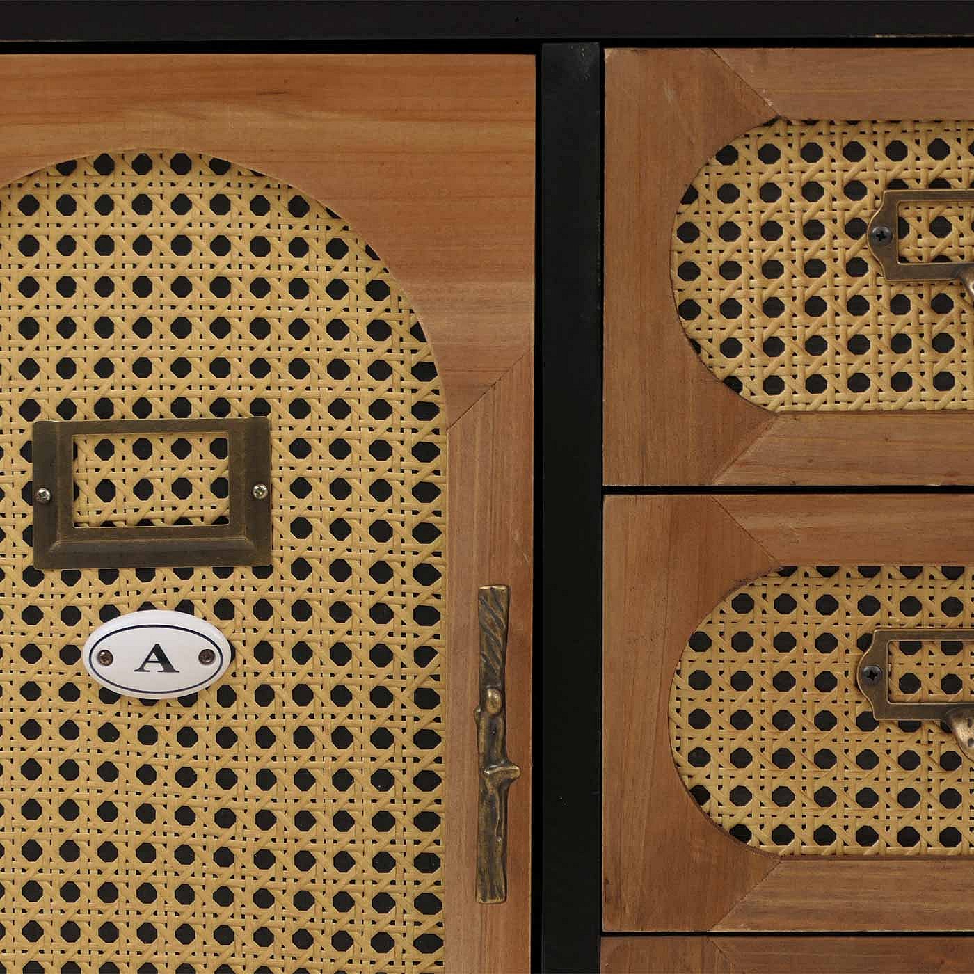 Comò da farmacia MCW-O63, credenza armadio scomparti cassetti, effetto rattan vintage, 80x91x40cm ~ telaio nero