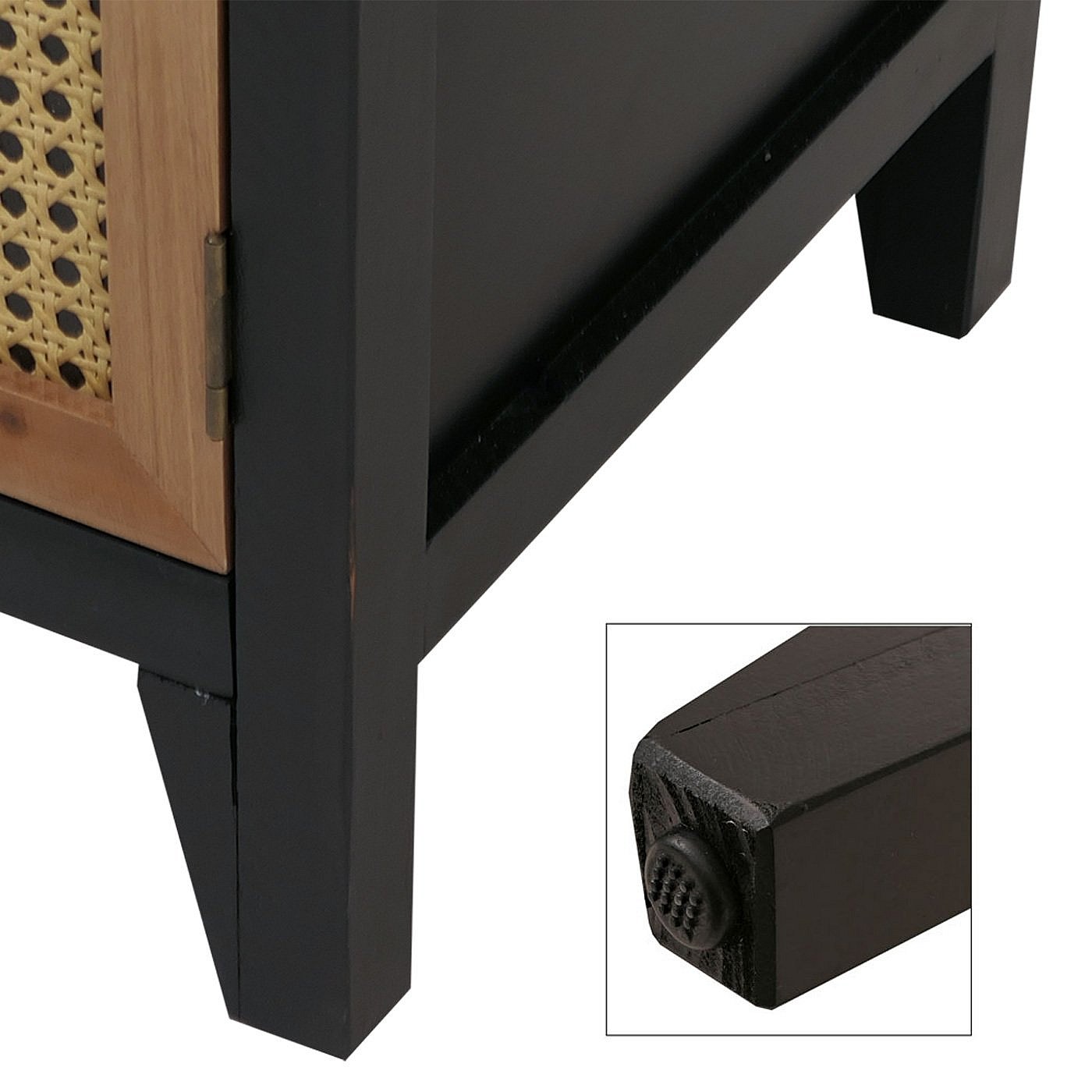 Comodino cassettiera 3 cassetti MCW-K87 legno di paulonia rattan nero legno chiaro