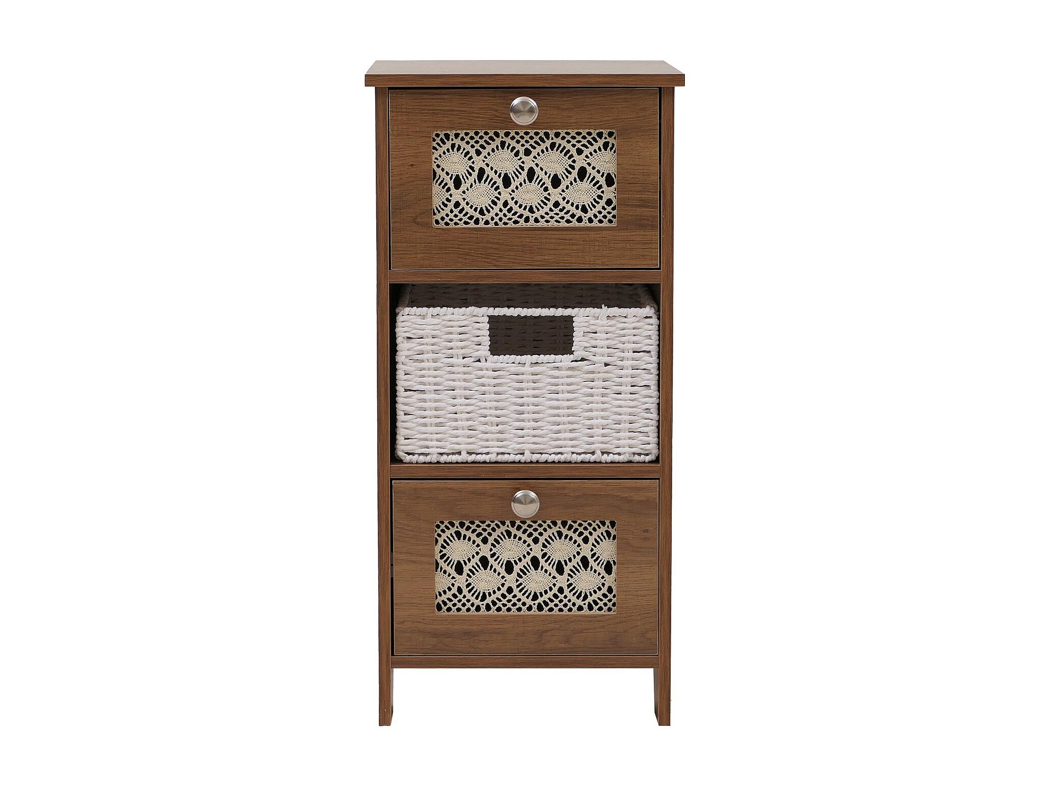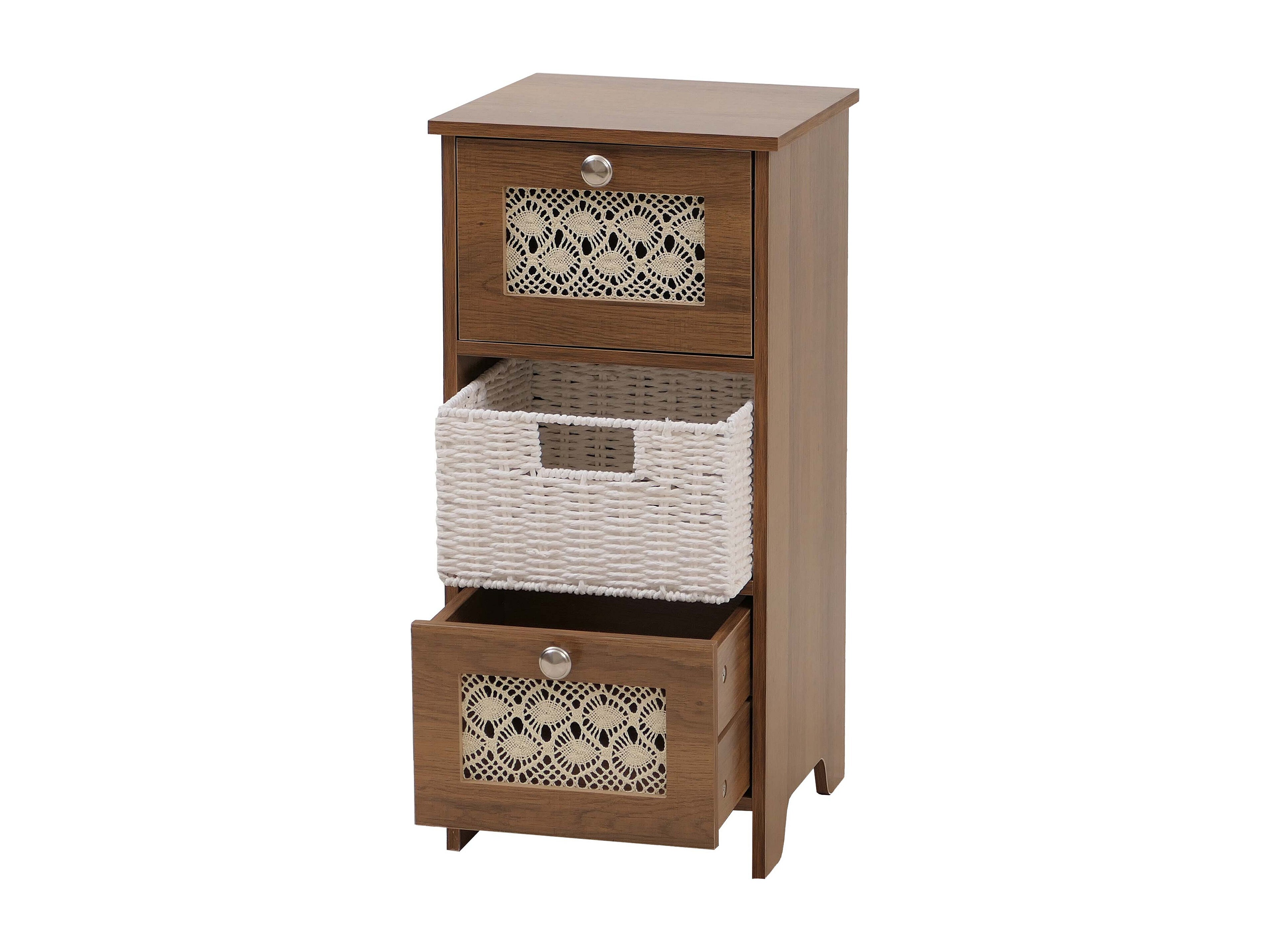 Comò MCW-O75, cassettiera, 3 cassetti a cestello decorativi legno melamina 63x30x30cm ~ marrone