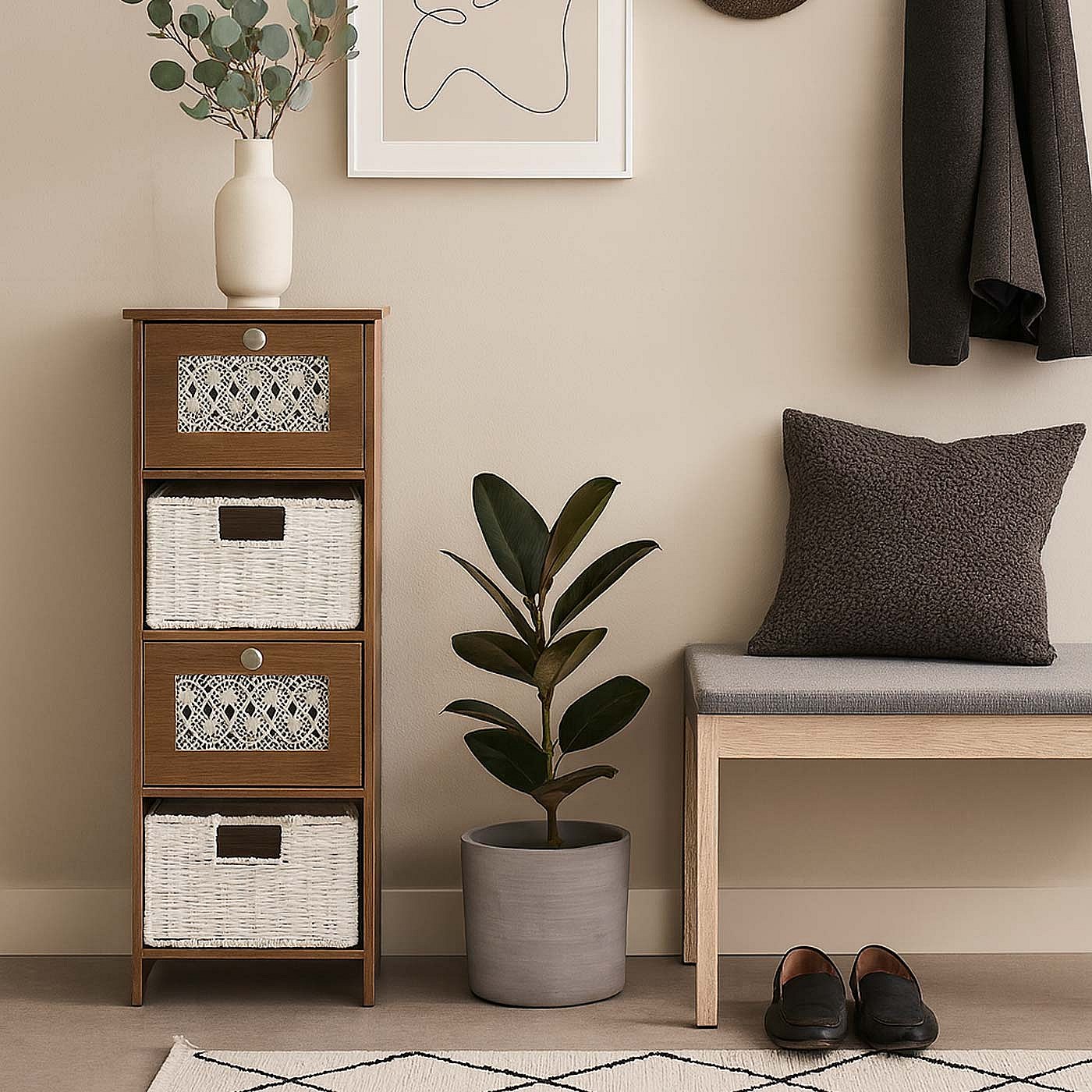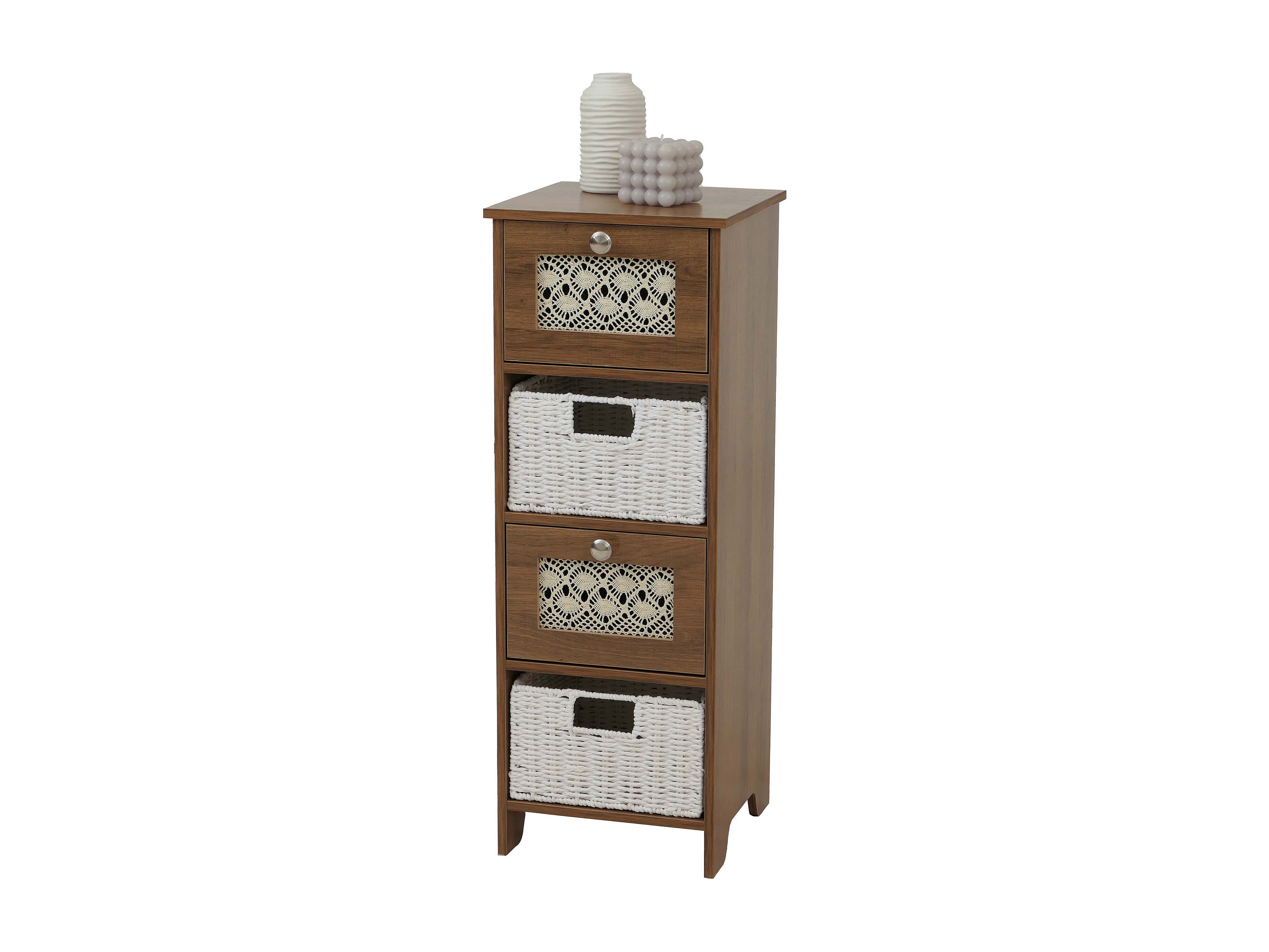 Comò MCW-O75, cassettiera, 4 cassetti a cestello decorativi legno melamina 82x30x30cm ~ marrone