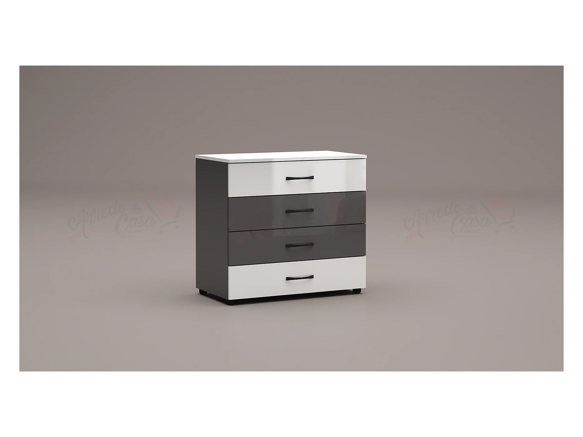comò da camera da notte design moderno con quattro cassetti CG4 80x74 bianco e grigio lucido