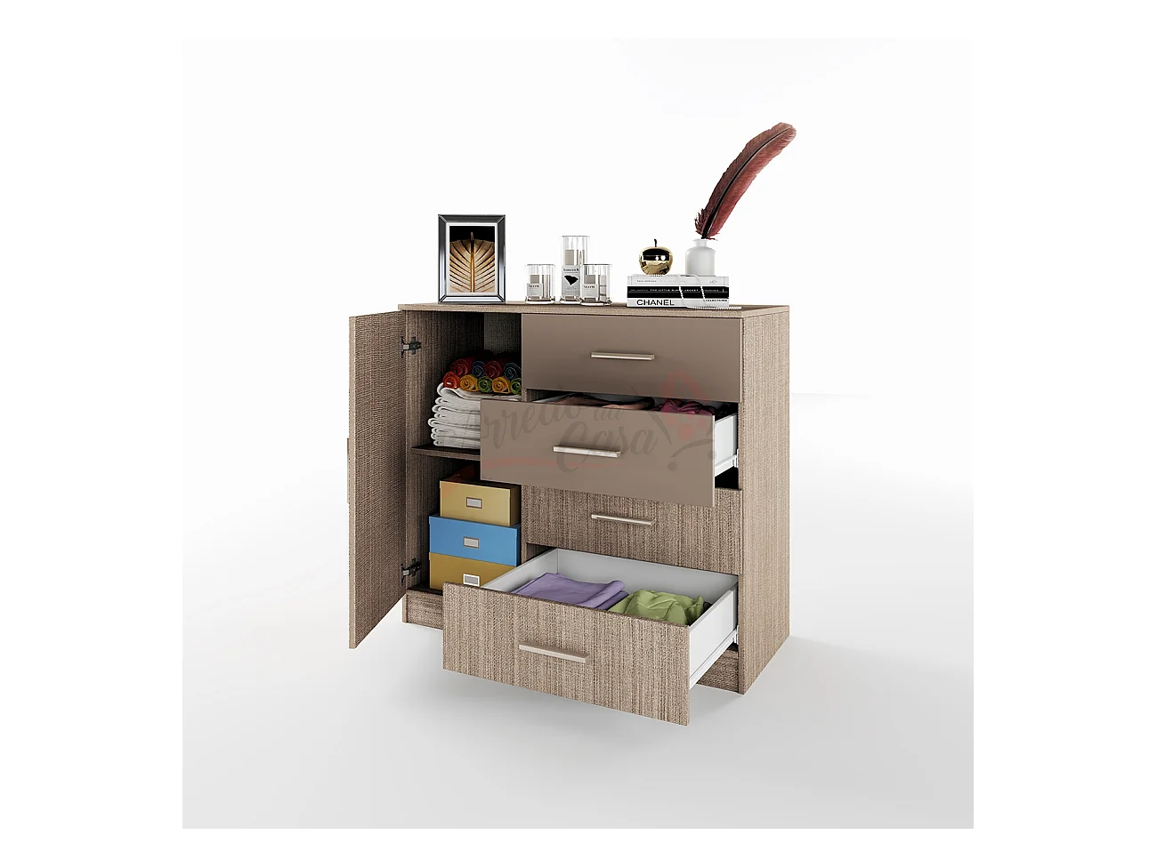 Comò da camera da letto effetto legno minimalista con quattro cassetti CSMG2 70x73 marrone