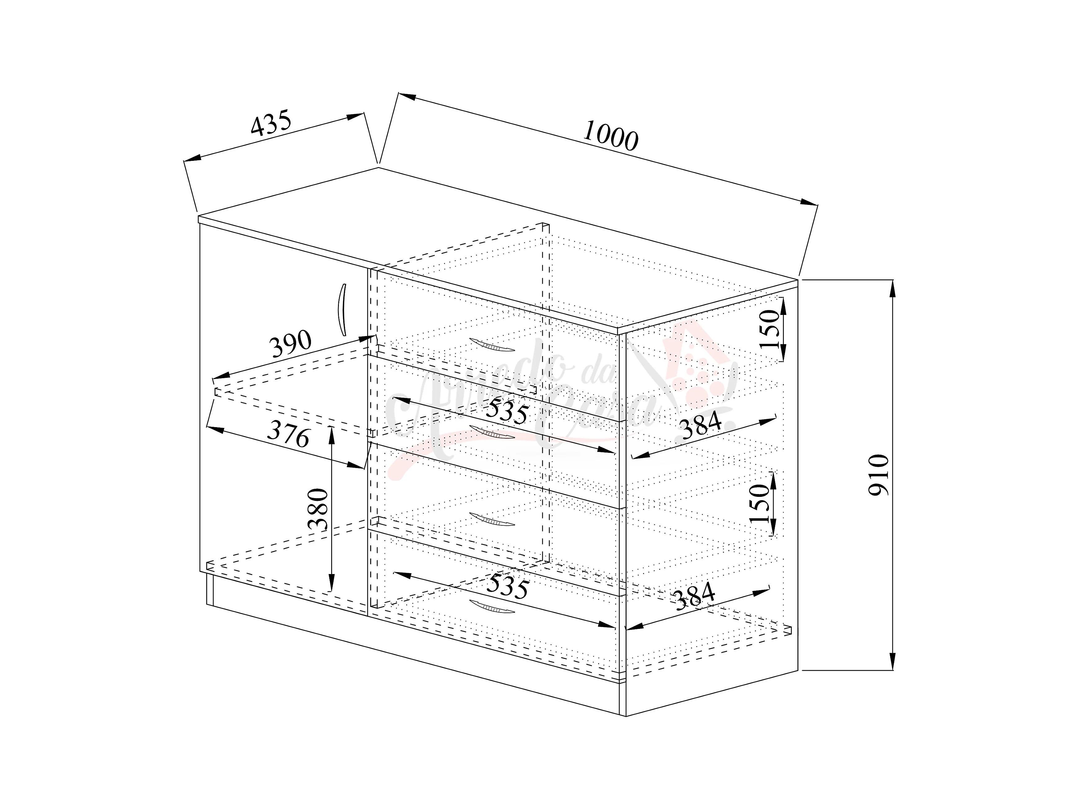 Comò per cameretta con anta e cassetti CI3008 100x91 rovere
