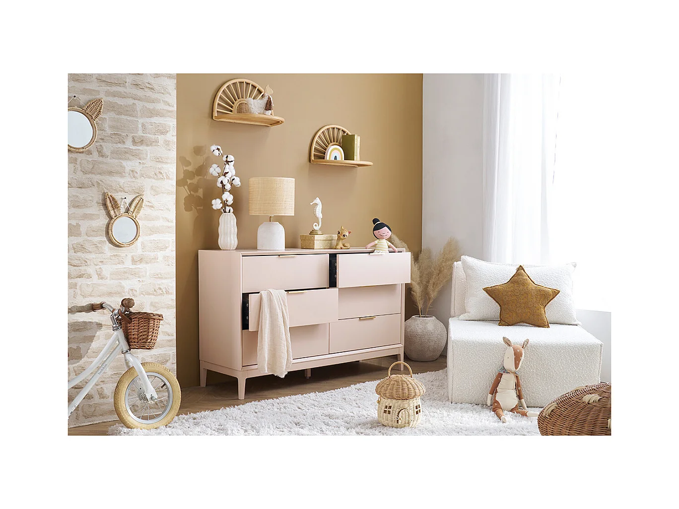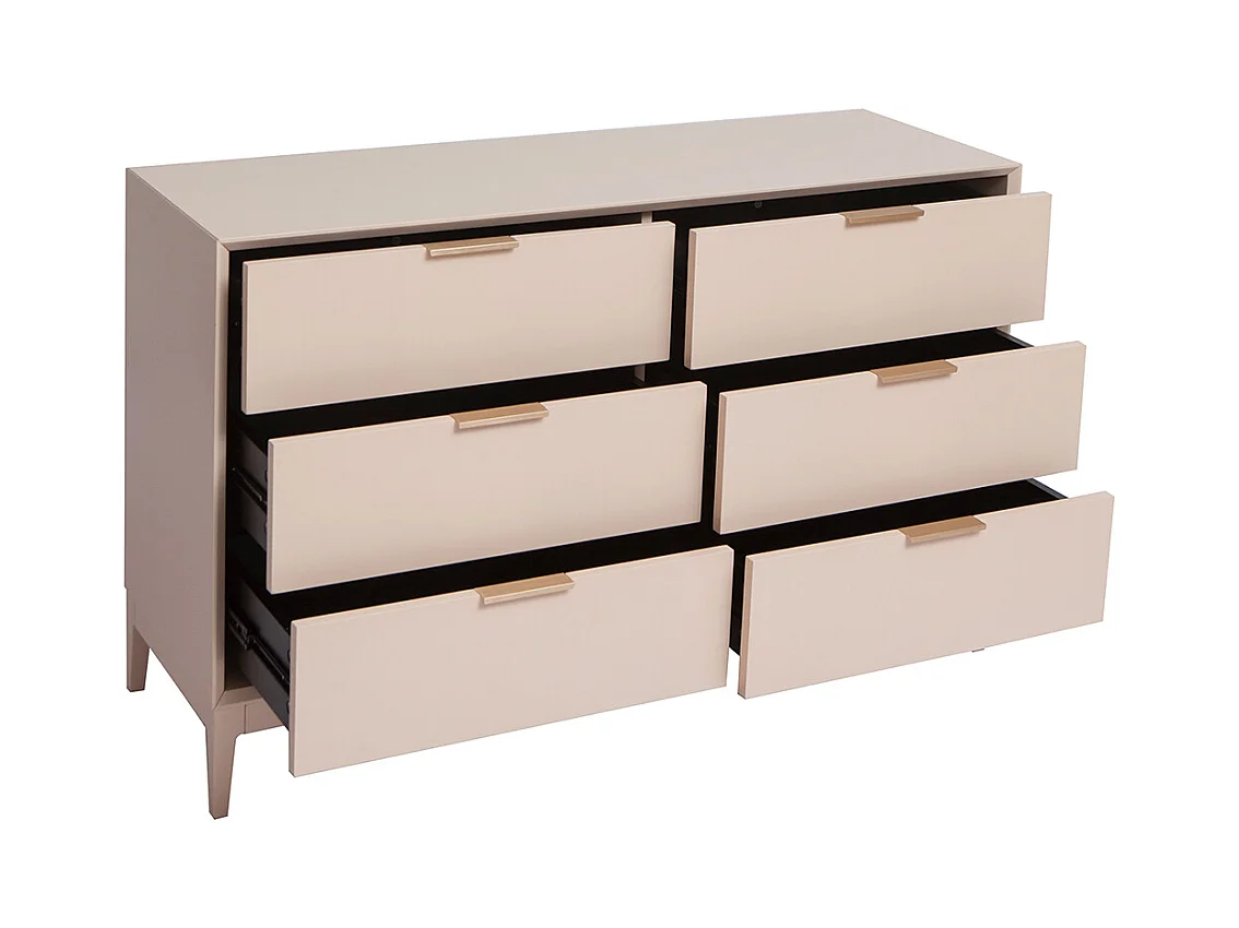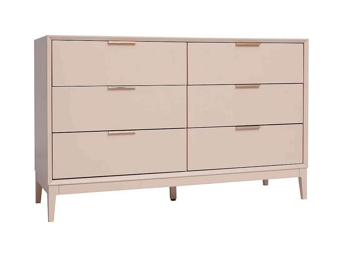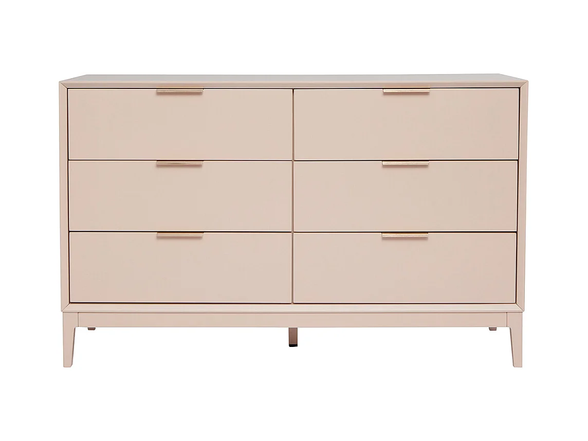 Comò rosa cipria e metallo dorato 6 cassetti L120 cm GIANA