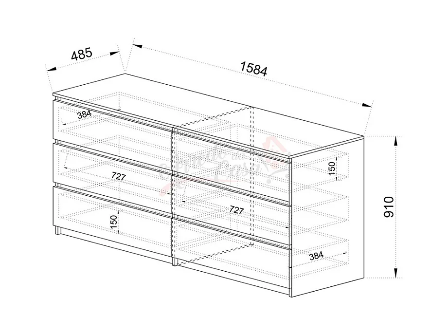 Comò spazioso da camera da notte design moderno con sei cassetti CI26 158x91 rovere