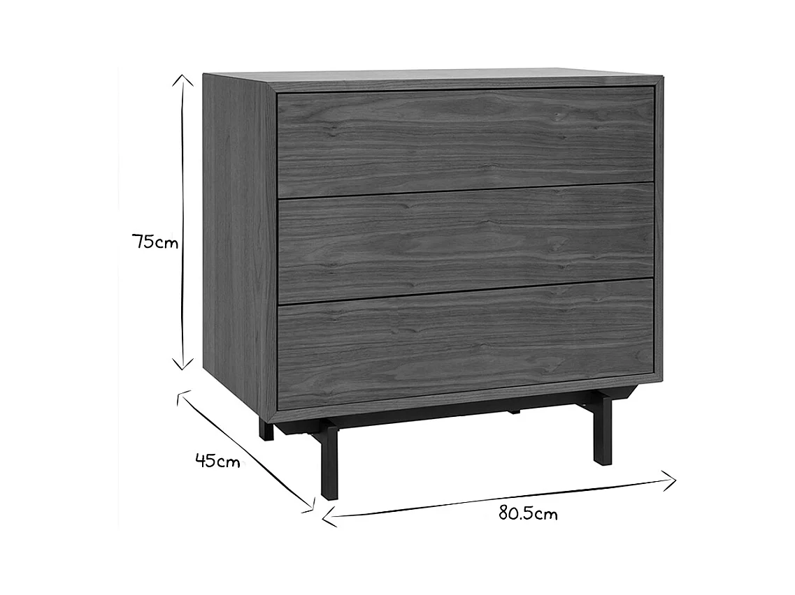 Comò vintage 3 cassetti noce e metallo L80,5 cm MANNY