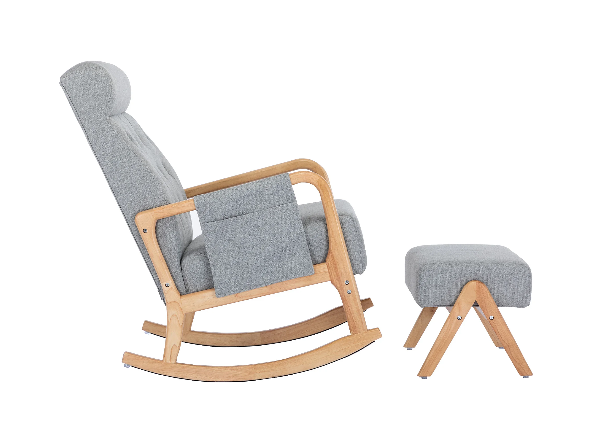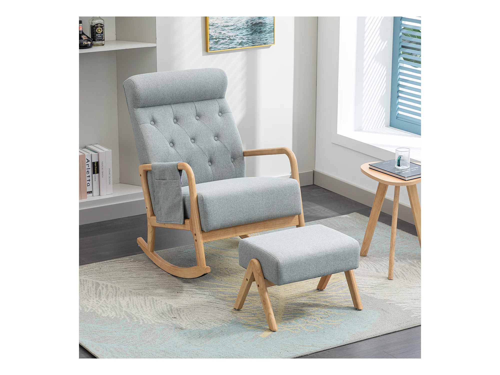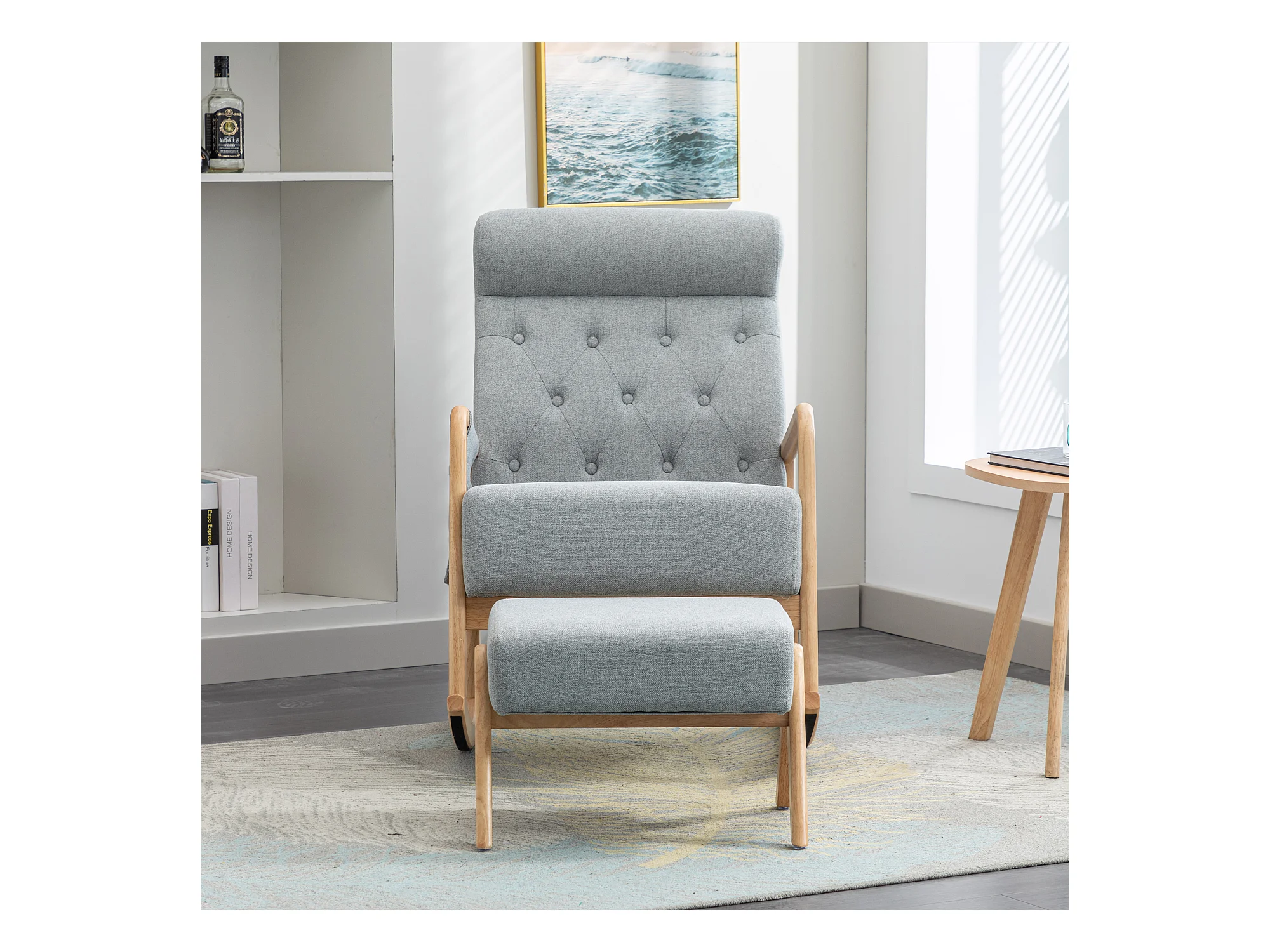 Comoda sedia a dondolo con poggiapiedi, sedia a dondolo in schiuma con rivestimento in lino, supporta 300 libbre 65x85x94 cm, grigio chiaro