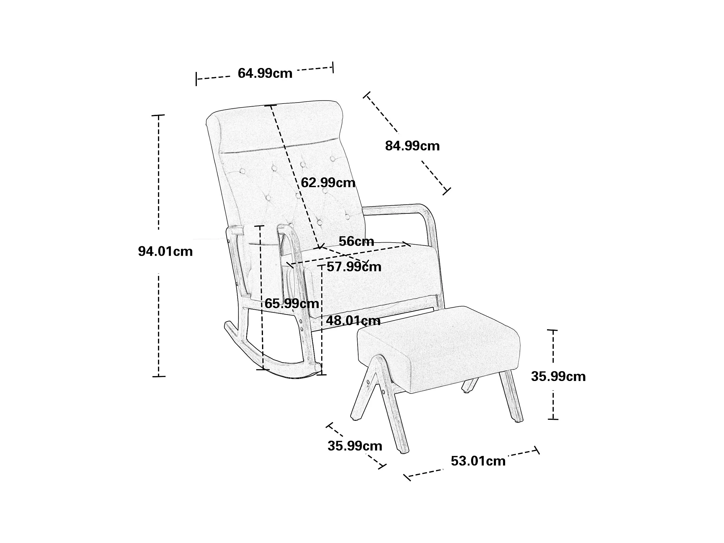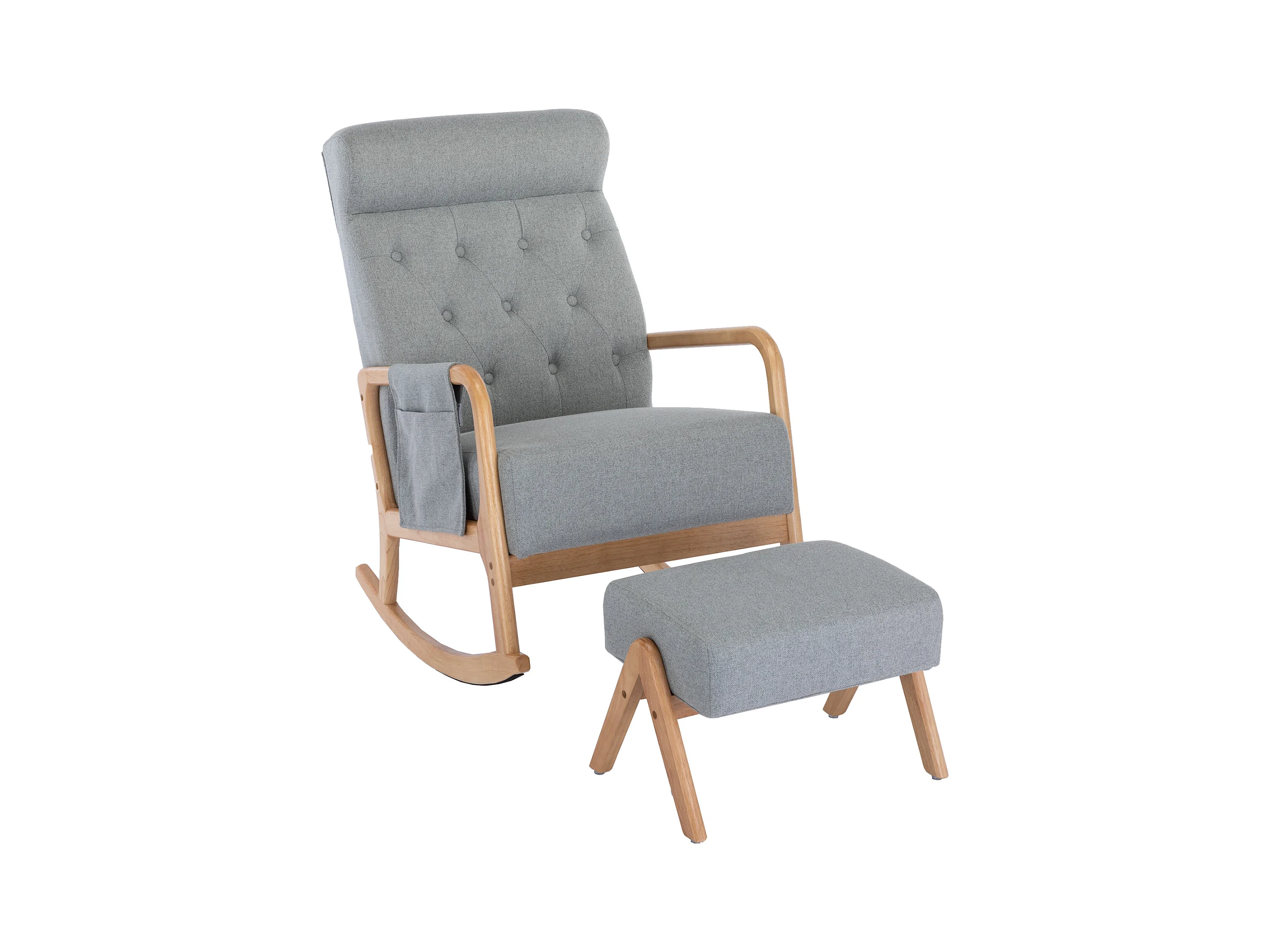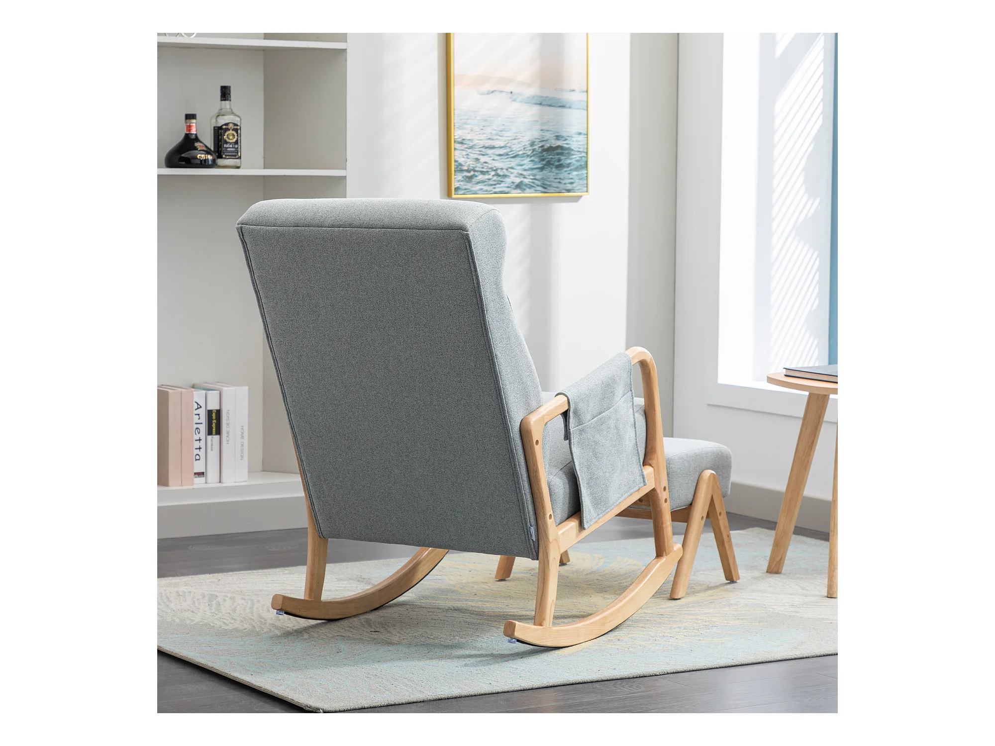 Comoda sedia a dondolo con poggiapiedi, sedia a dondolo in schiuma con rivestimento in lino, supporta 300 libbre 65x85x94 cm, grigio chiaro
