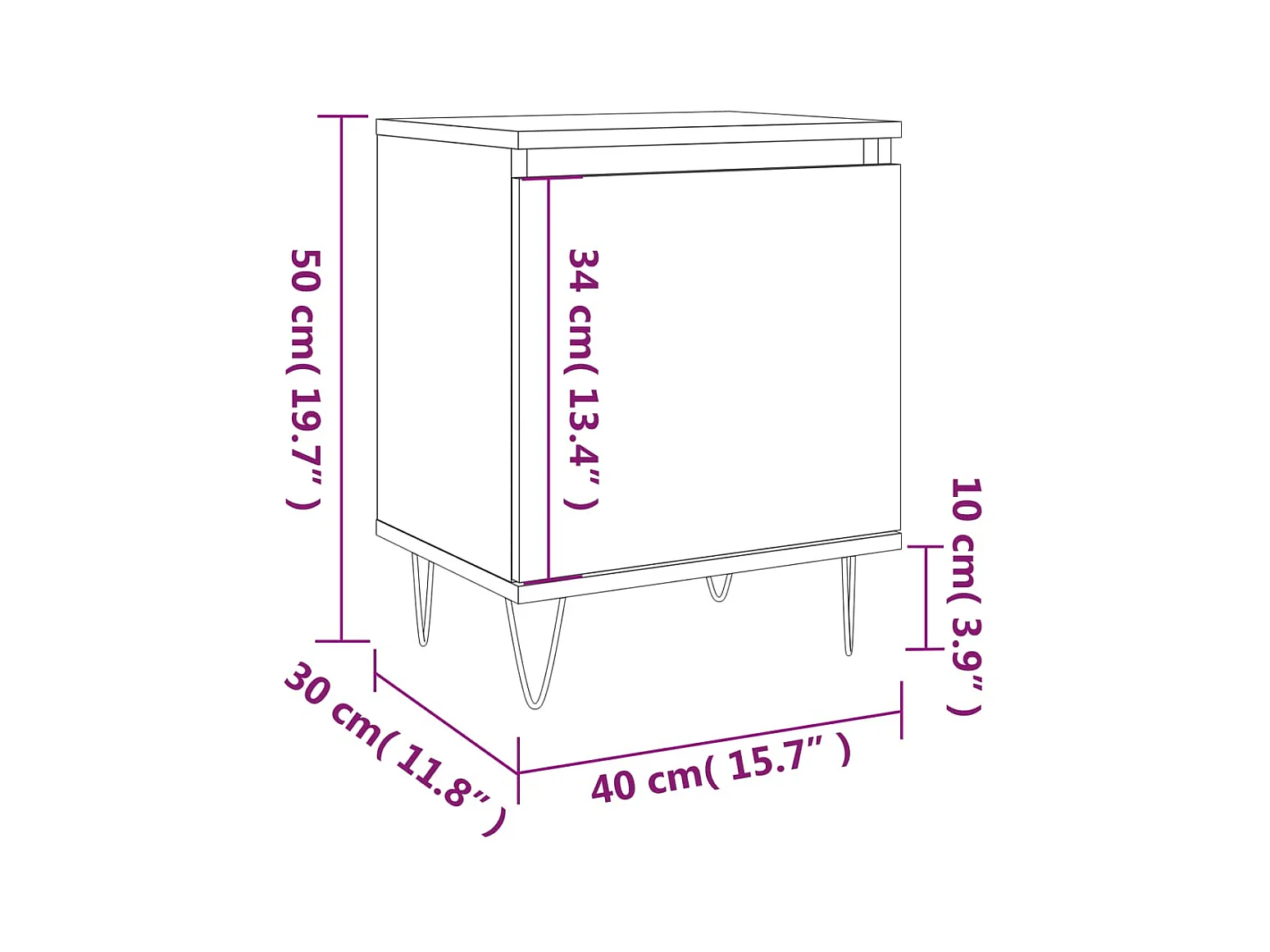Comodino con gambe in metallo Grigio cemento 40x30x50 cm