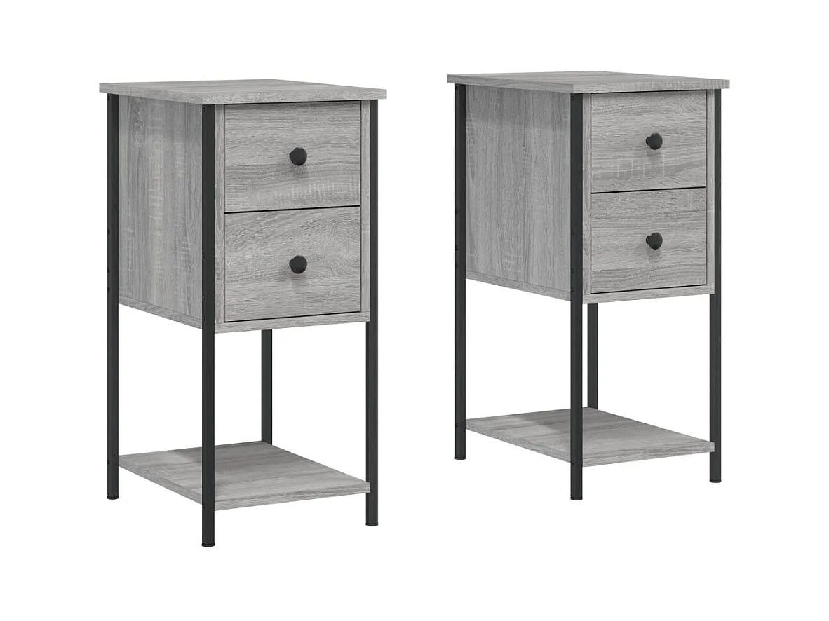 Comodini in legno ingegnerizzato e metallo grigio Sonoma da 2 pezzi