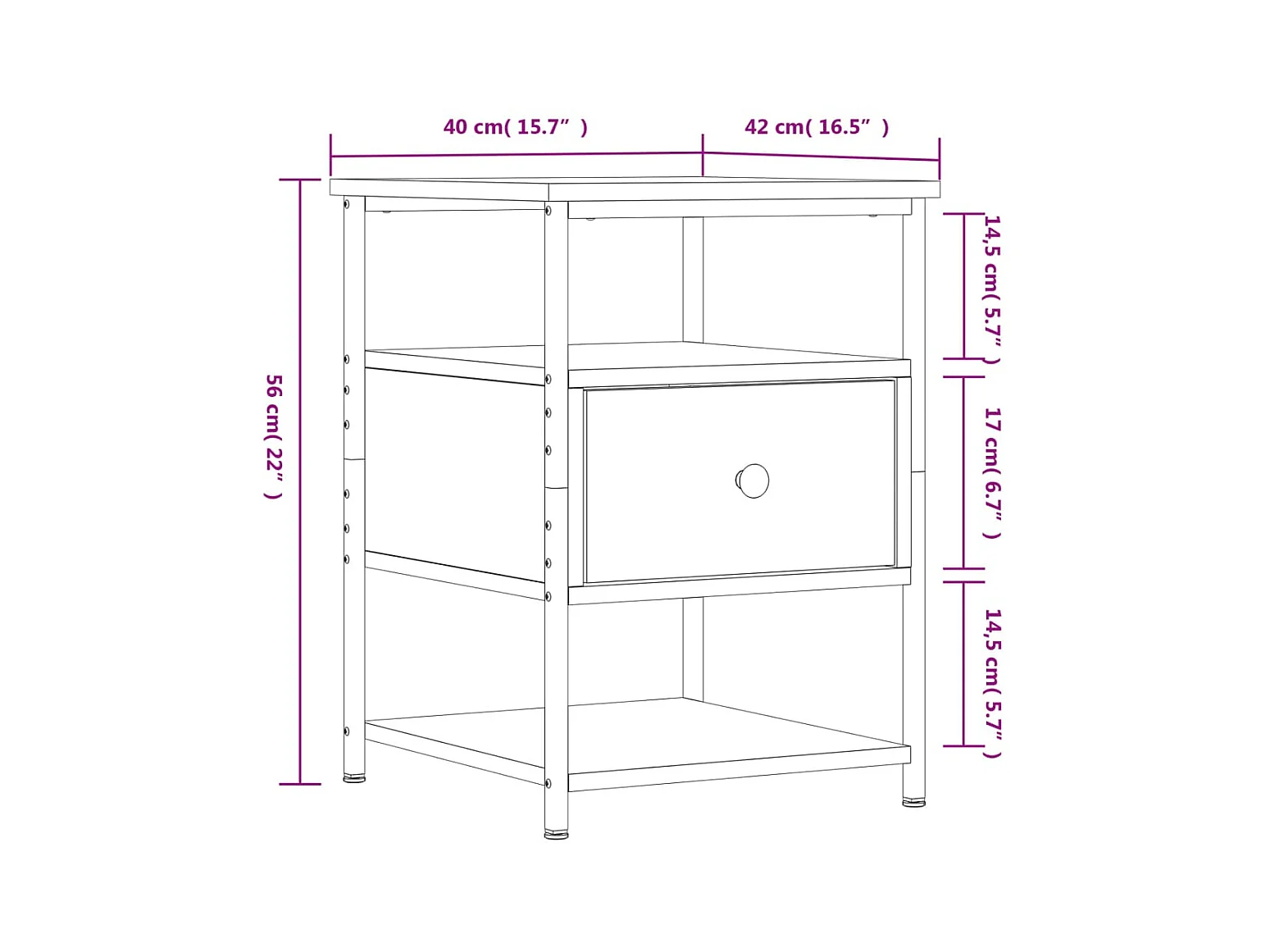 Comodino in rovere Sonoma 40x42x55 cm in derivati del legno