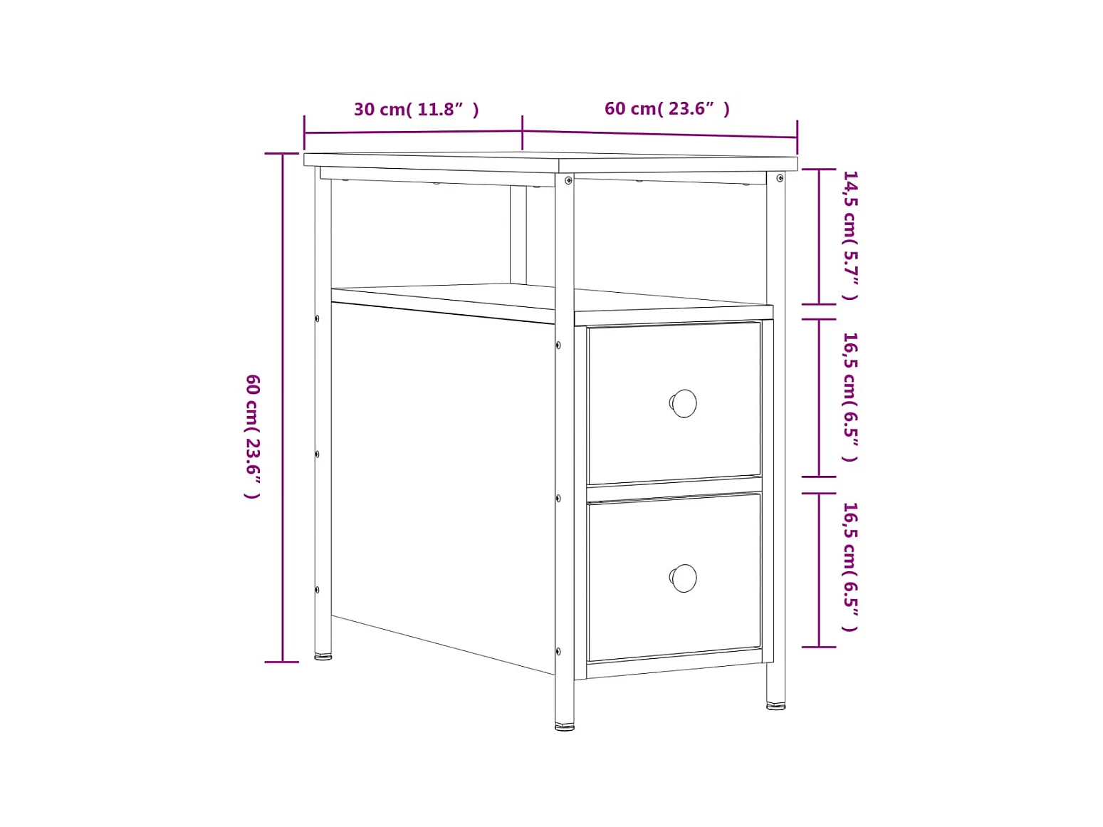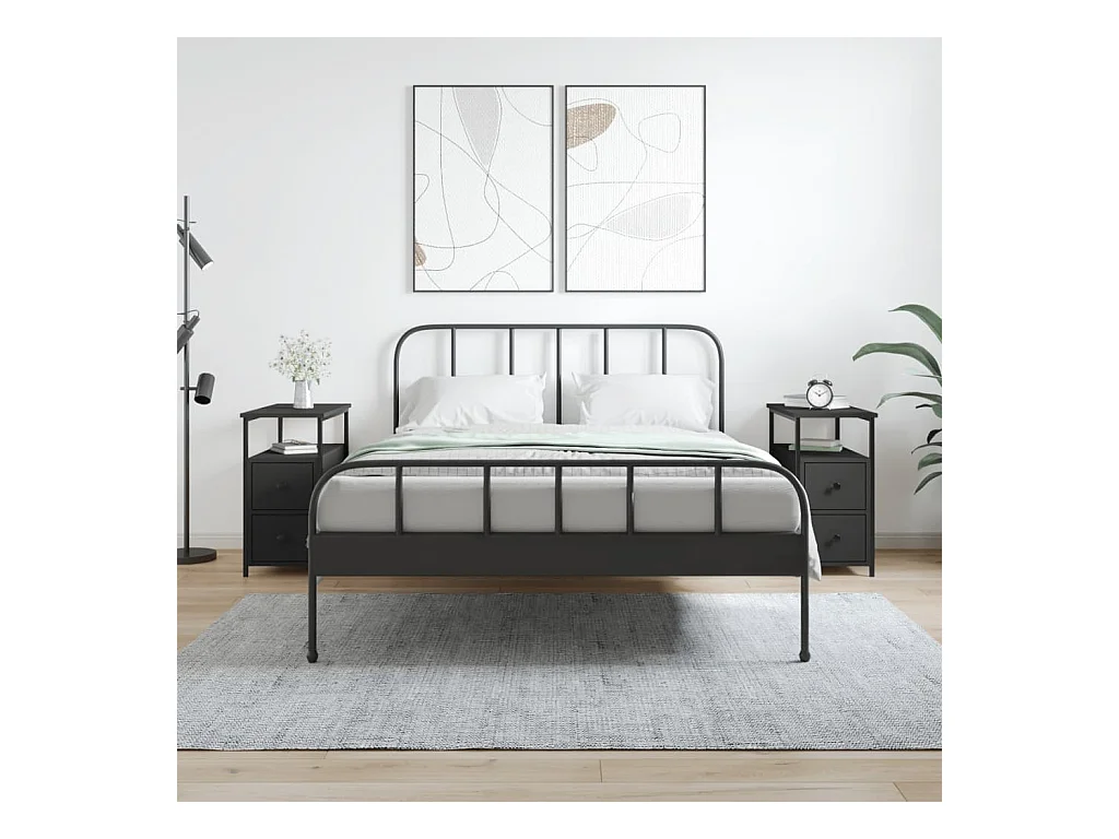 Comodino Nero 60x31x60 cm in Legno Multistrato e Metallo
