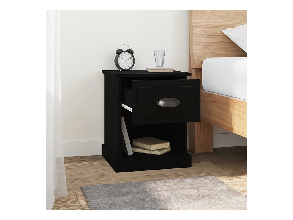 Comodino 1 cassetto in legno laminato nero 54x42 cm