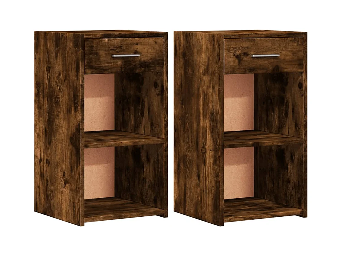 Comodini con cassetto 2 pz rovere affumicato 35x34x66,5 cm