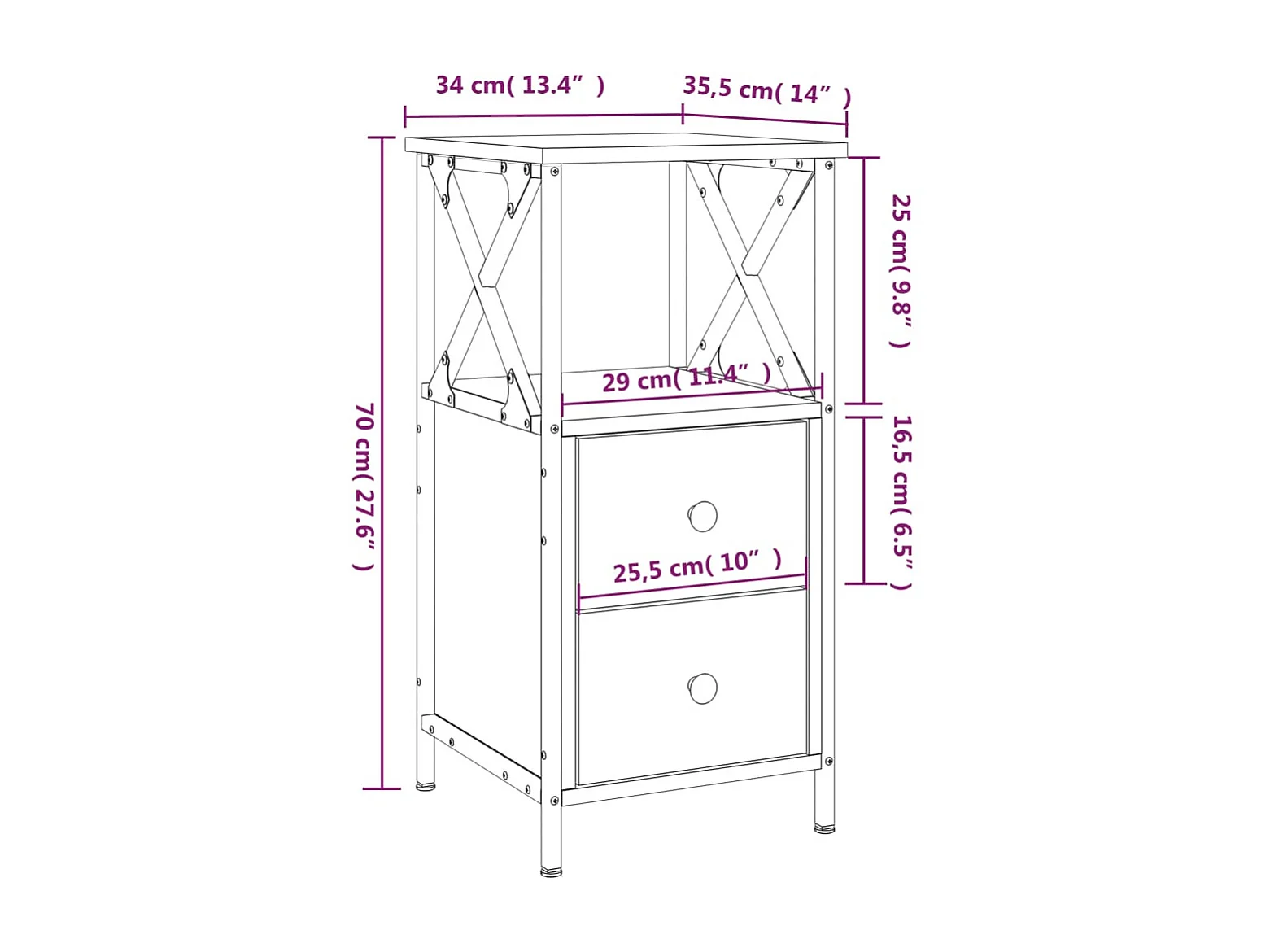 Comodini 2 pezzi rovere Sonoma 34x35,5x70 cm in multistrato