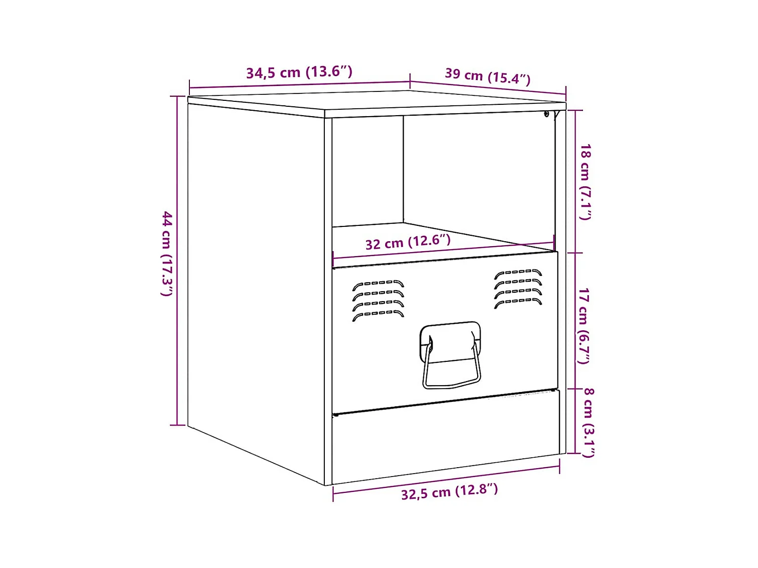 Comodino Antracite 34,5x39x44 cm in Acciaio