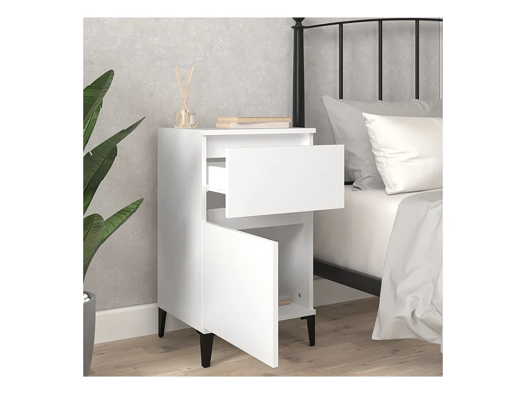 Comodino con gambe in legno massello Bianco 40x35x69 cm