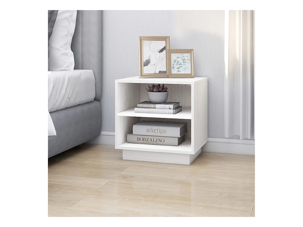 Comodino Bianco 40x31x40 cm Legno massello di pino