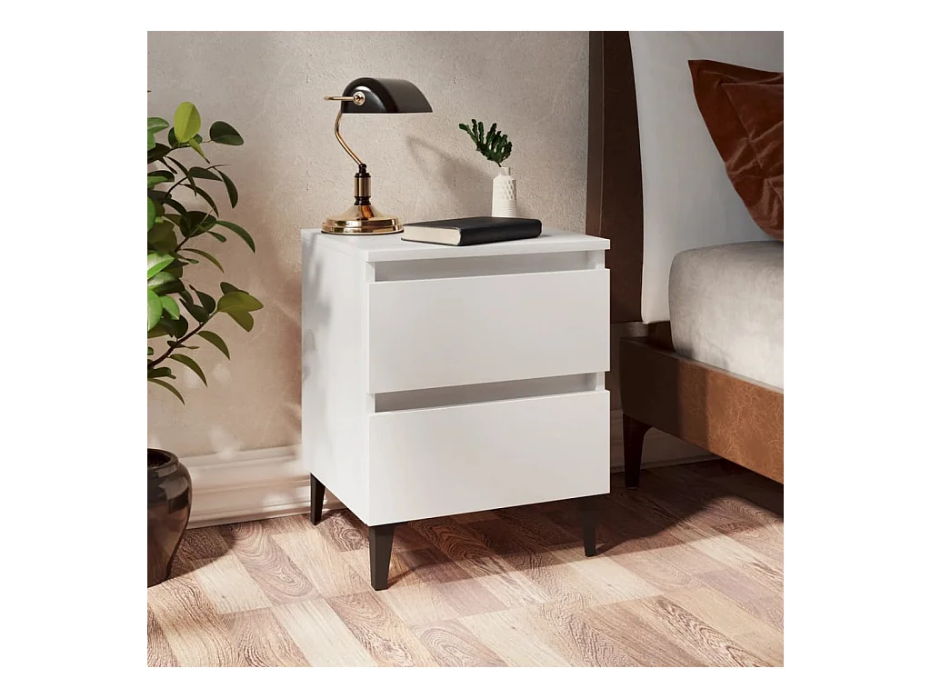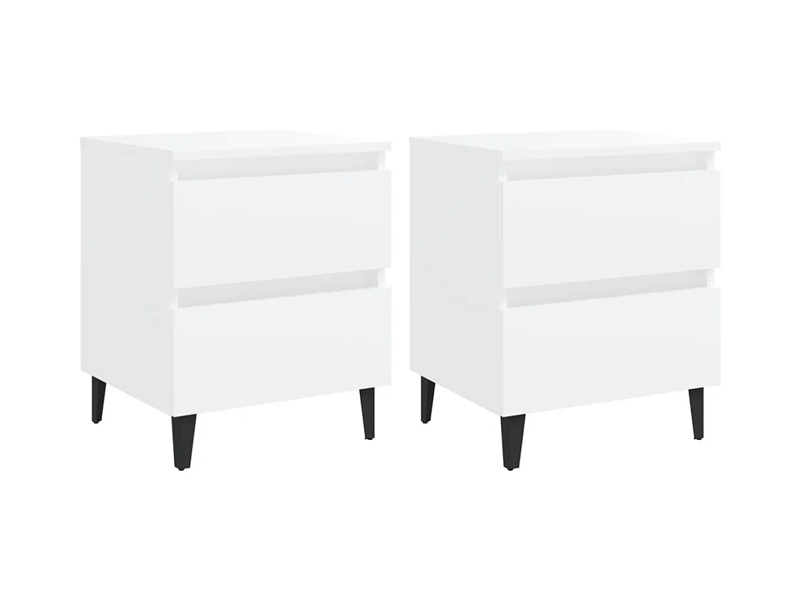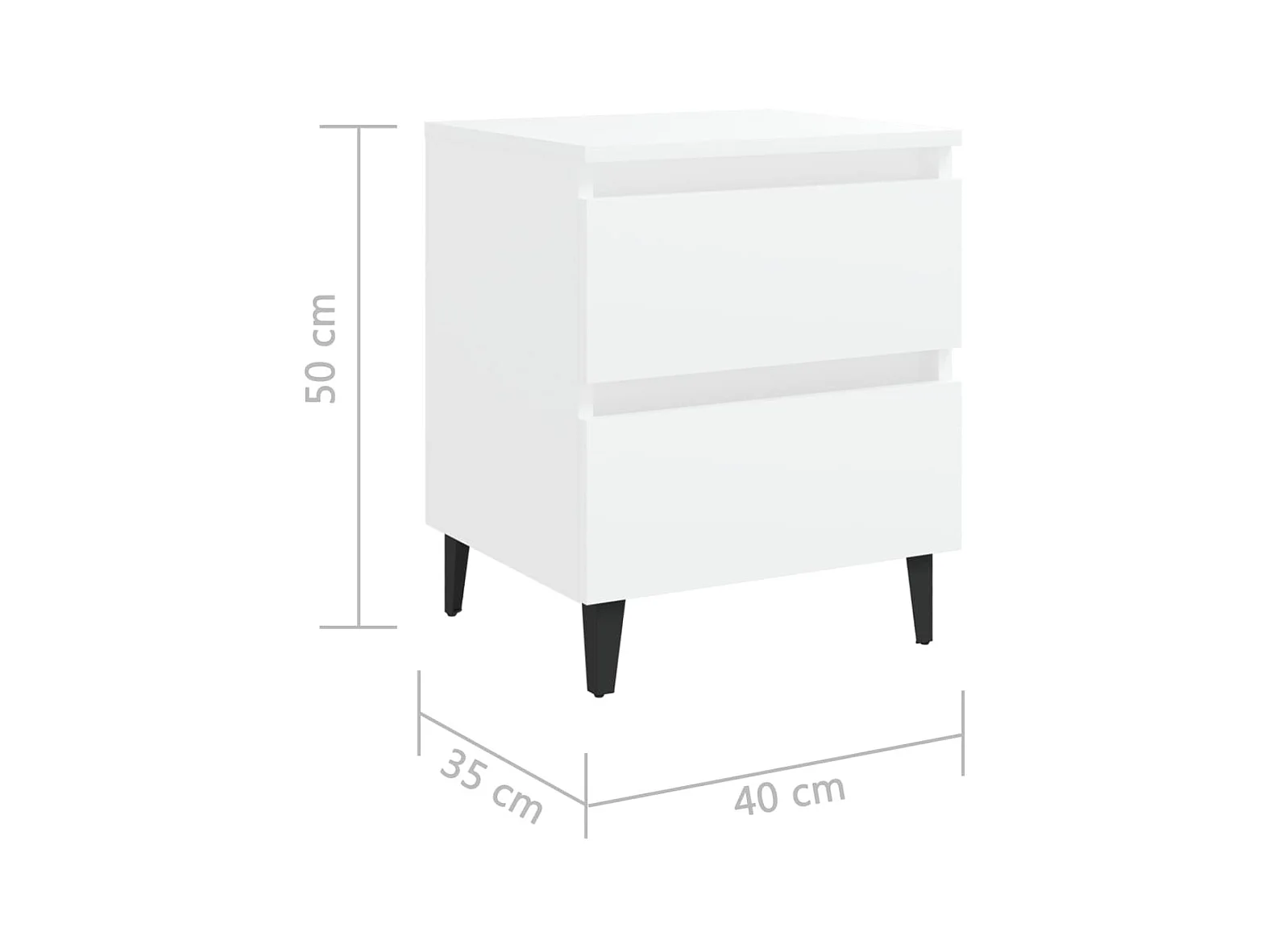 Comodini gambe in pino 2 pz Bianco lucido 40x35x50 cm