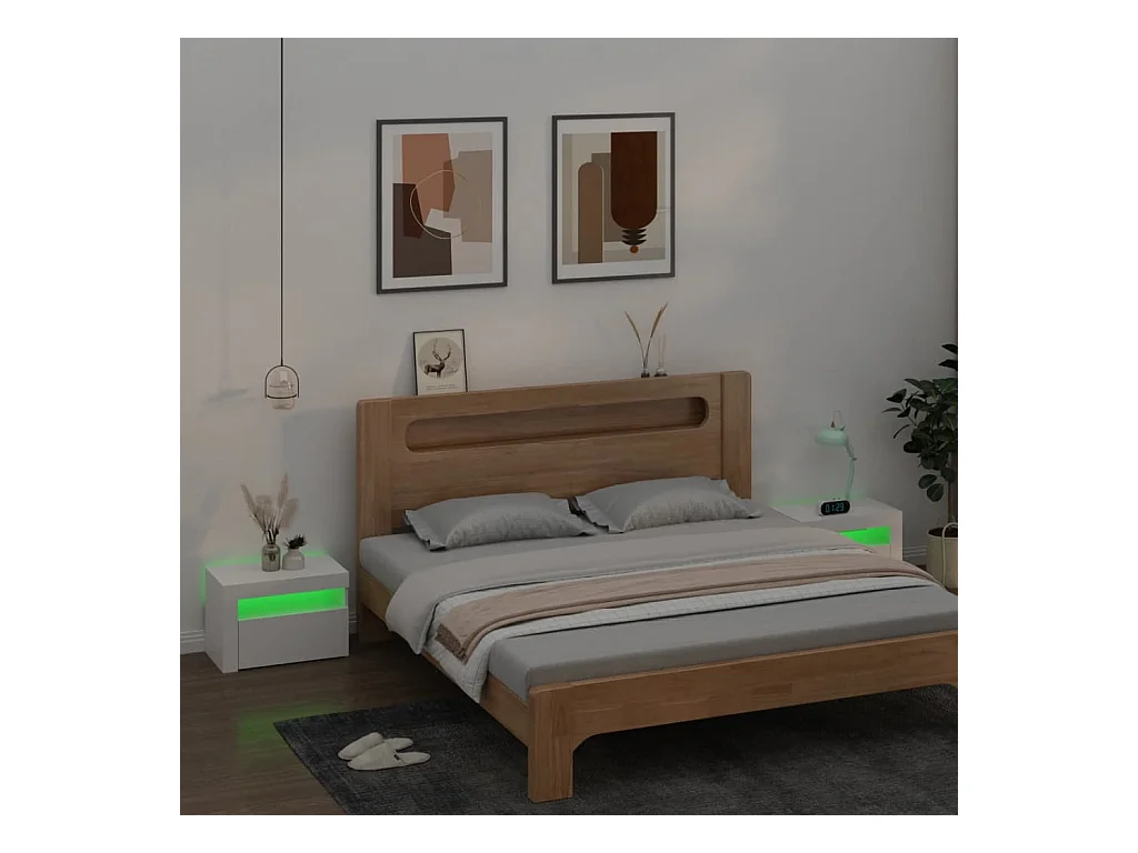 Comodini 2 pz con LED Bianco 60x35x40 cm