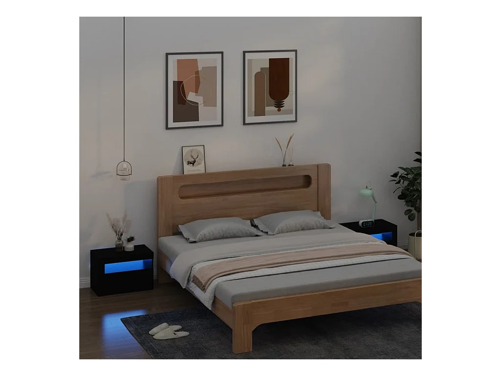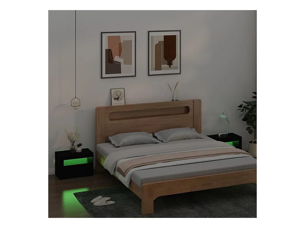 Comodini 2 pz con LED Nero 60x35x40 cm