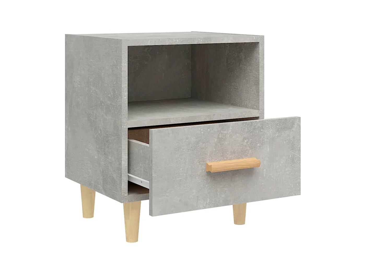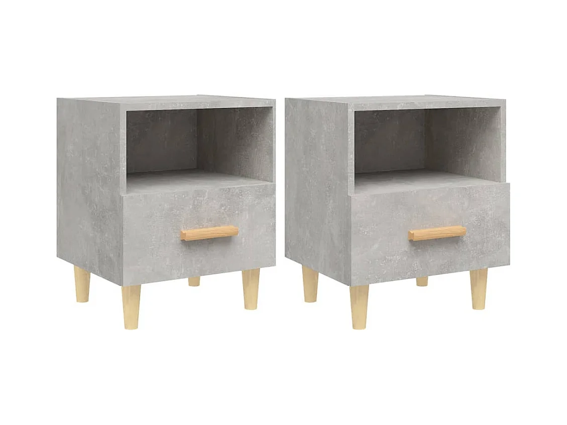 Comodini con Gambe Pino Massello 2pz Grigio Cemento 40x35x50 cm
