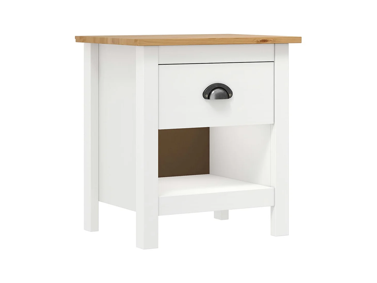 Comodino Hill bianco 46x35x49,5 cm in legno massello di pino