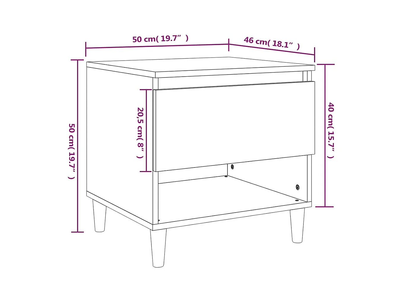 comodino in rovere nero 50x32x60cm in legno ingegnerizzato
