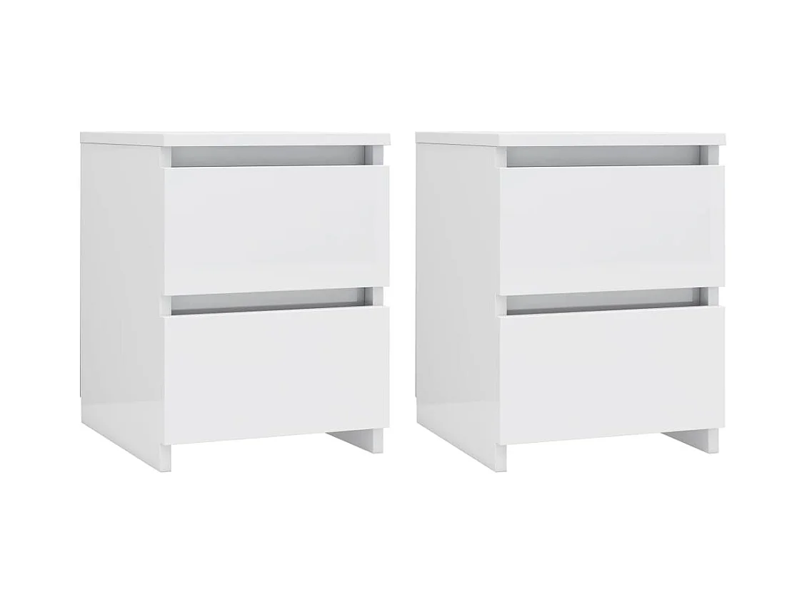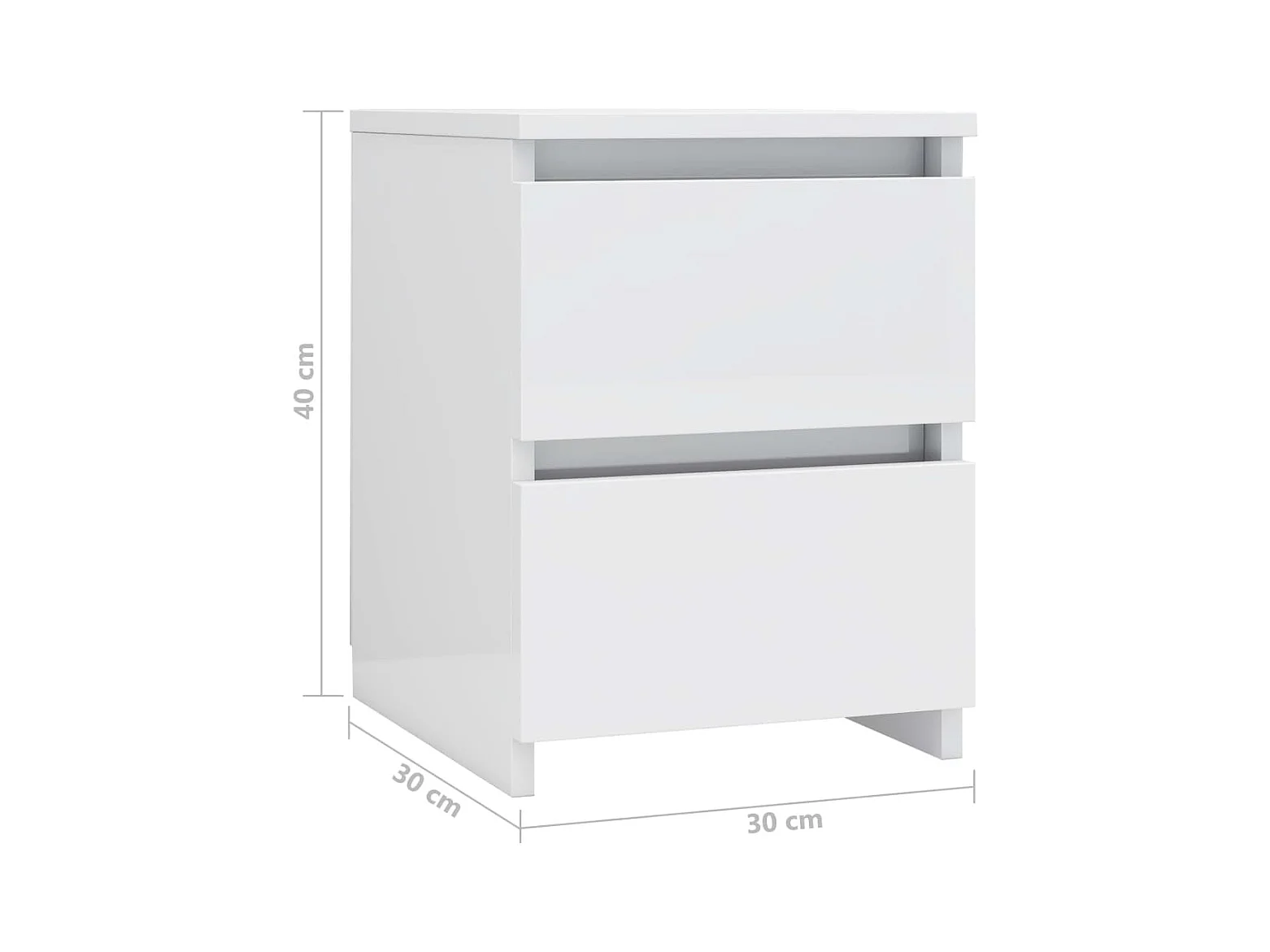 Comodini 2pz Bianco Lucido 30x30x40 cm in Legno Multistrato