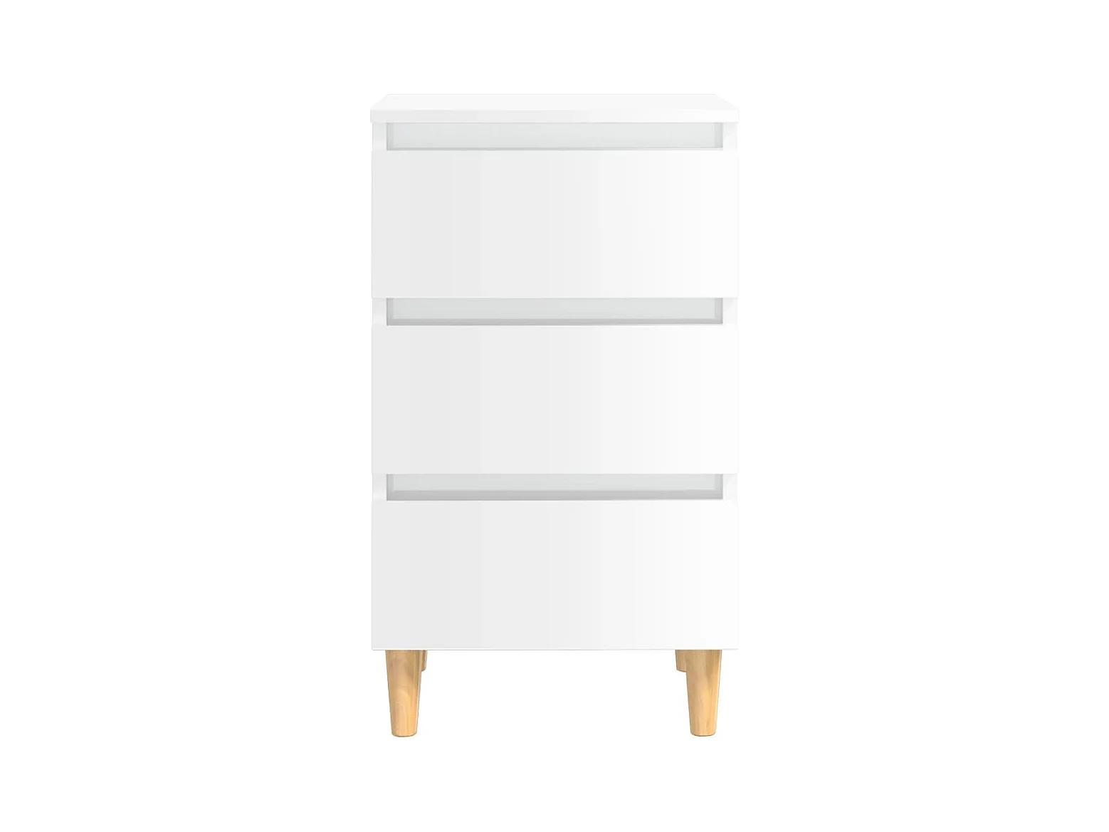 Comodini con Gambe in Legno 2pz Bianco Lucido 40x35x69 cm