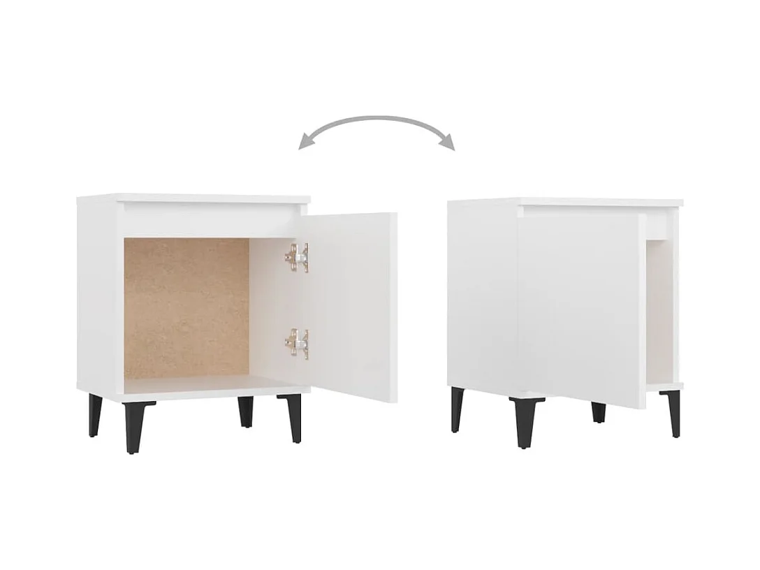 Comodini con Gambe in Metallo 2pz Bianco Lucido 40x30x50 cm