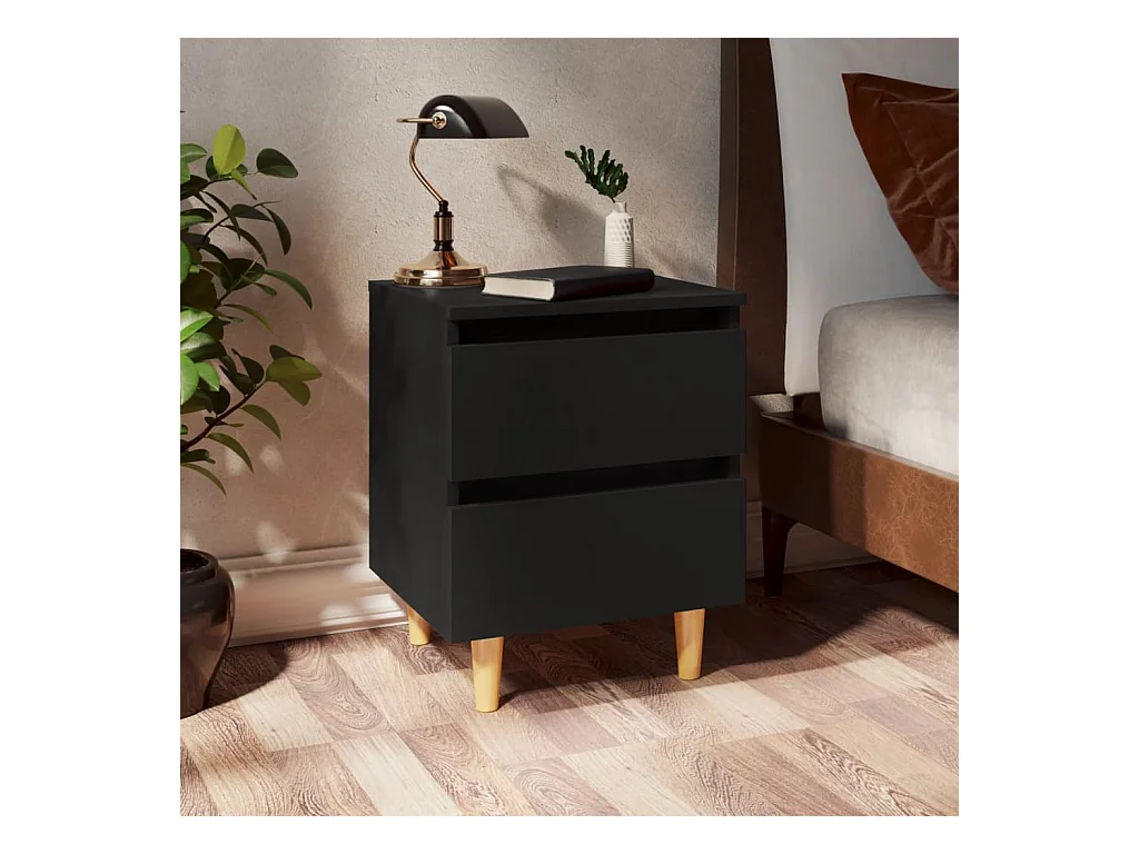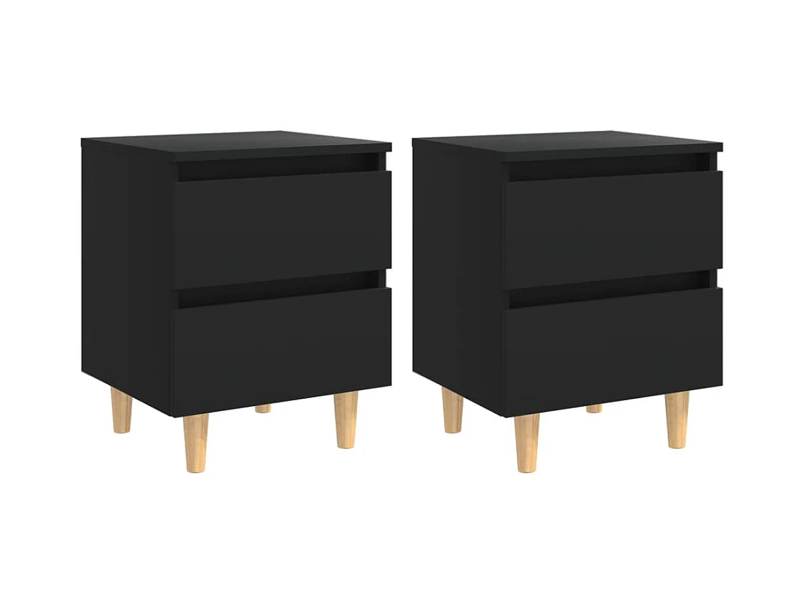 Comodini con gambe in pino 2 pz Nero 40x35x50 cm