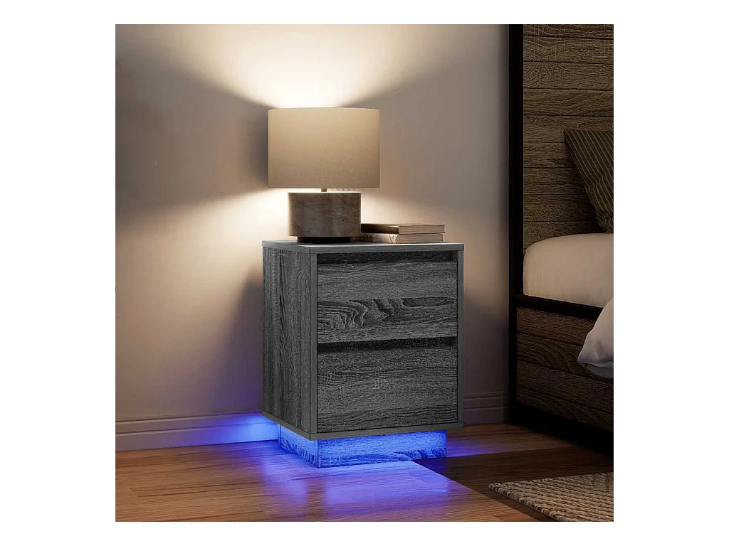 Comodino in legno ingegnerizzato grigio cemento e luci a LED