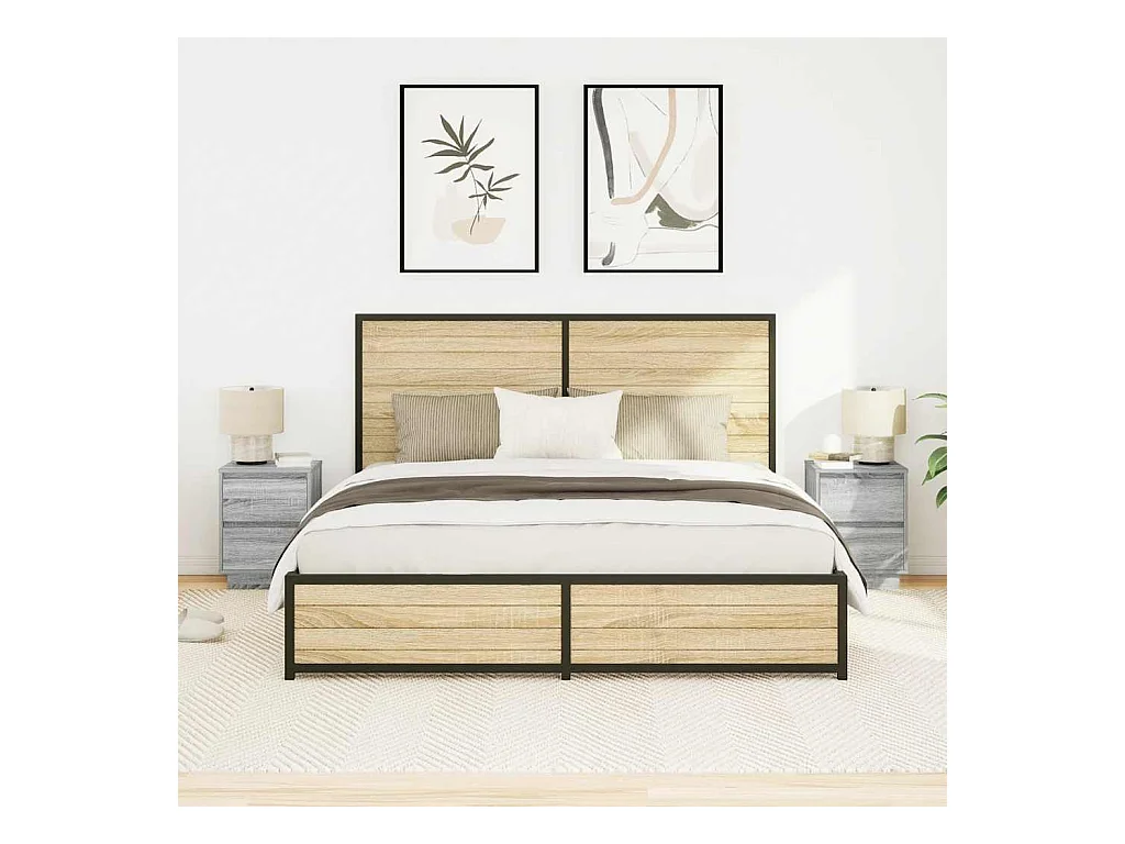 Comodini con luci LED 2 pezzi grigio sonoma 38x34x50cm