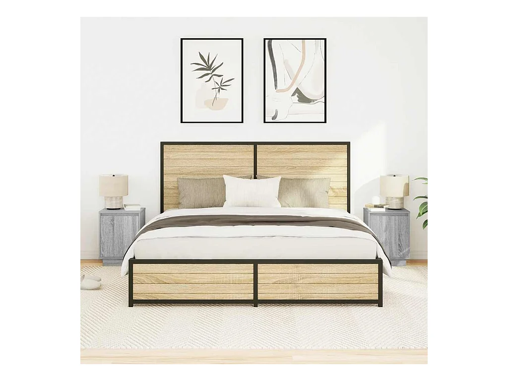 Comodini con luci LED 2 pezzi grigio sonoma 38x34x50cm